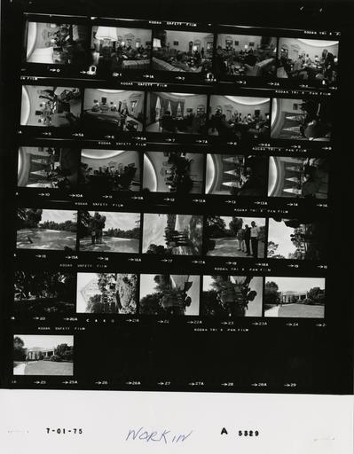 | Keywords: Ford A5329 NLGRF photo contact sheet (1975-06-30)(Gerald Ford Library).jpg White House Photographic Office WHPO is housed at the Gerald R Ford Presidential Library a branch of the National Archives and Records Administration NARA <br/><br/> This file is a 200 dpi photo contact sheet having images from roll of film A5329 of the August 9 1974 - January 20 1977 Gerald R Ford White House Photographic Office Series A0001-A9999 and B0001-B2886 photographs <br/><br/> The date on the photo contact sheet is the date the roll of film was processed not necessarily the date the photographs were taken See table below for additional details 1975-06-30 Gerald R Ford Presidential Library Image http //www fordlibrarymuseum gov/library/whphotos/A5329_NLGRF jpg A5329_NLGRF jpg from http //www fordlibrarymuseum gov/library/whphotos/19750630whpo pdf White House Photographs June 30 1975 of the http //www fordlibrarymuseum gov/Library/whphotos/whpo asp White House Photographic Collection page White House Photographic Office WHPO - Norkin PD-USGov Institution Institution Gerald R Ford Presidential Library Table wikitable sortable + Photo contact sheet A5329 U S President Ford Administration Gerald R Ford Library Frame s Tone Subject proper Subject generic Names Geographic Location Photographer Date - 0-3 BW Interview with Columnists from Field Newspapers Washington Post United Features seated on sofas near fireplace; various angles; Hartmann in 2nd frame GRF Nessen Scowcroft; Carl Rowan David Broder Marquis Childs Oval Office Norkin 1975-06-30 - 4-6 BW Meeting with Secretary of Defense seated around desk; various angles and distances; Buchen smoking pipe; all not in every frame GRF Schlesinger Buchen Rumsfeld Oval Office Norkin 1975-06-30 - 7-14 BW Meeting with Speechwriters seated around desk; various angles and distances; all not in every frame GRF Greenspan Hartmann Cheney Theis Orben Pullen Oval Office Norkin 1975-06-30 - 15-18 BW standing posing; not in all frames Jack Stiles Unidentified Men Swimming Pool - White House Grounds Norkin 1975-07-01 - 20 BW Meeting with Presidential Scholars of 1975 and Families GRF at podium speaking; taken through trees; all not in frame GRF Presidential Scholars of 1975 East Garden Norkin 1975-07-01 - 21 BW Meeting with Presidential Scholars of 1975 and Families GRF at podium; taken from behind group GRF Presidential Scholars of 1975 East Garden Norkin 1975-07-01 - 22-23 BW Following Meeting with Presidential Scholars of 1975 and Families standing near sidewalk to Oval Office GRF O'Donnell Others South Driveway Norkin 1975-07-01 - 24-25 BW Following Meeting with Presidential Scholars of 1975 and Families walking toward Oval Office; backs to camera GRF O'Donnell Others Sidewalk Between South Driveway and Oval Office Kennerly 1975-07-01 - 19 BW Meeting with Presidential Scholars of 1975 and Families BF with African-American youth Betty Ford Presidential Scholars of 1975 East Garden Norkin 1975-07-01 Gerald R Ford Presidential Library and Museum-cooperation PD-USGov Contact sheets by the Ford White House June 1975 |