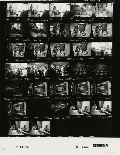 | Keywords: Ford A5365 NLGRF photo contact sheet (1975-07-03)(Gerald Ford Library).jpg White House Photographic Office WHPO is housed at the Gerald R Ford Presidential Library a branch of the National Archives and Records Administration NARA <br/><br/> This file is a 200 dpi photo contact sheet having images from roll of film A5365 of the August 9 1974 - January 20 1977 Gerald R Ford White House Photographic Office Series A0001-A9999 and B0001-B2886 photographs <br/><br/> The date on the photo contact sheet is the date the roll of film was processed not necessarily the date the photographs were taken See table below for additional details 1975-07-03 Gerald R Ford Presidential Library Image http //www fordlibrarymuseum gov/library/whphotos/A5365_NLGRF jpg A5365_NLGRF jpg from http //www fordlibrarymuseum gov/library/whphotos/19750703whpo pdf White House Photographs July 3 1975 of the http //www fordlibrarymuseum gov/Library/whphotos/whpo asp White House Photographic Collection page White House Photographic Office WHPO <br/> Creator David Hume Kennerly PD-USGov Institution Institution Gerald R Ford Presidential Library Table wikitable sortable + Photo contact sheet A5365 U S President Ford Administration Gerald R Ford Library Frame s Tone Subject proper Subject generic Names Geographic Location Photographer Date - 3-5 BW Trip to Ohio -Flight from Cincinnati to Cleveland GRF seated back to camera; photographer working GRF Photographer Air Force One - President's Cabin Kennerly 1975-07-03 - 6-7 BW Trip to Ohio -Flight from Cincinnati to Cleveland seated; holding oxygen mask over face Jack Ford Air Force One Kennerly 1975-07-03 - 8-16 BW Trip to Ohio -Flight from Cincinnati to Cleveland seated reading; oxygen masks hanging from ceiling GRF Air Force One - President's Cabin Kennerly 1975-07-03 - 17-18 BW Trip to Ohio -Arrival for Independence Festival Supper Fundraising Dinner - Cleveland Ohio GRF in foreground waving to crowd in distance GRF Keiser Crowd Cleveland OH Cleveland Sheraton Hotel - Outside Kennerly 1975-07-03 - 19-20 BW Trip to Ohio -Arrival for Independence Festival Supper Fundraising Dinner - Cleveland Ohio walking through lobby GRF Keiser Crowd Cleveland OH Camelback Inn - Lobby Kennerly 1975-07-03 - 21-23 BW Trip to Ohio -Independence Festival Supper Fundraising Dinner - Cleveland Ohio long shots from back of room; high angle Cleveland OH Cleveland Sheraton Hotel - Grand Ballroom Kennerly 1975-07-03 - 24-28 BW Trip to Ohio -Independence Festival Supper Fundraising Dinner - Cleveland Ohio GRF at podium; taken from low level GRF Platform Guests Cleveland OH Cleveland Sheraton Hotel - Grand Ballroom Kennerly 1975-07-03 - 29 BW Kennerly 1975-07-03 - 30 BW Trip to Ohio -Reception for Cleveland Area Civic Leaders - Cleveland Ohio GRF standing speaking; others seated in square; all not in frame GRF Cleveland Area Civic Leaders Cleveland OH Cleveland Sheraton Hotel - Circus Room Kennerly 1975-07-03 - 31-34 BW Flight from Cleveland Ohio to Andrews Air Force Base seated talking; GRF smoking pipe; coatless GRF Jack Ford Air Force One - President's Cabin Kennerly 1975-07-03 Gerald R Ford Presidential Library and Museum-cooperation PD-USGov Contact sheets by the Ford White House July 1975 Photographs by David Hume Kennerly from 1975 |
