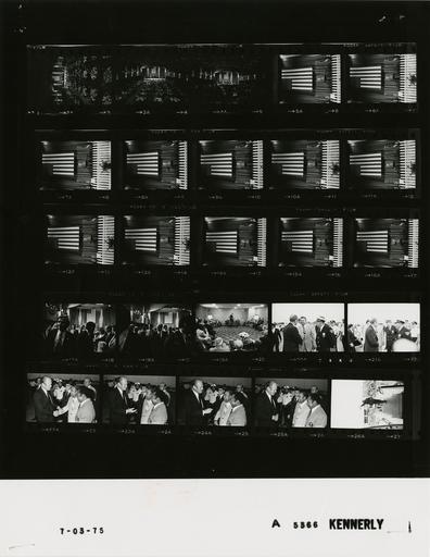 | Keywords: Ford A5366 NLGRF photo contact sheet (1975-07-03)(Gerald Ford Library).jpg White House Photographic Office WHPO is housed at the Gerald R Ford Presidential Library a branch of the National Archives and Records Administration NARA <br/><br/> This file is a 200 dpi photo contact sheet having images from roll of film A5366 of the August 9 1974 - January 20 1977 Gerald R Ford White House Photographic Office Series A0001-A9999 and B0001-B2886 photographs <br/><br/> The date on the photo contact sheet is the date the roll of film was processed not necessarily the date the photographs were taken See table below for additional details 1975-07-03 Gerald R Ford Presidential Library Image http //www fordlibrarymuseum gov/library/whphotos/A5366_NLGRF jpg A5366_NLGRF jpg from http //www fordlibrarymuseum gov/library/whphotos/19750703whpo pdf White House Photographs July 3 1975 of the http //www fordlibrarymuseum gov/Library/whphotos/whpo asp White House Photographic Collection page White House Photographic Office WHPO <br/> Creator David Hume Kennerly PD-USGov Institution Institution Gerald R Ford Presidential Library Table wikitable sortable + Photo contact sheet A5366 U S President Ford Administration Gerald R Ford Library Frame s Tone Subject proper Subject generic Names Geographic Location Photographer Date - 2A-16A BW Trip to Ohio -Independence Festival Supper Fundraising Dinner - Cleveland Ohio GRF at podium; various angles and distances GRF Platform Guests Crowd Cleveland OH Cleveland Sheraton Hotel - Grand Ballroom Kennerly 1975-07-03 - 17A-18A BW Trip to Ohio -Following Independence Festival Supper Fundraising Dinner - Cleveland Ohio greeting handshaking; GRF leaving room GRF Crowd Cleveland OH Cleveland Sheraton Hotel - Grand Ballroom Kennerly 1975-07-03 - 19A BW Trip to Ohio -Reception for Cleveland Area Civic Leaders - Cleveland Ohio GRF standing speaking; others seated in square; all not in frame GRF Cleveland Area Civic Leaders Cleveland OH Cleveland Sheraton Hotel - Circus Room Kennerly 1975-07-03 - 20A-21A BW Trip to Ohio -Prior to Departure for Andrews Air Force Base - Cleveland Ohio greeting handshaking; all not in both frames GRF Police Officers Cleveland OH Cleveland Hopkins International Airport Kennerly 1975-07-03 - 22A-25A BW Trip to Ohio -Prior to Departure for Andrews Air Force Base - Cleveland Ohio greeting handshaking GRF Lee Simmons Simmons' Father Cleveland OH Cleveland Hopkins International Airport Kennerly 1975-07-03 - 26A BW Trip to Ohio -Prior to Departure for Andrews Air Force Base - Cleveland Ohio standing on steps to Air Force One; waving to crowd; back to camera GRF Cleveland OH Cleveland Hopkins International Airport Kennerly 1975-07-03 Gerald R Ford Presidential Library and Museum-cooperation PD-USGov Contact sheets by the Ford White House July 1975 Photographs by David Hume Kennerly from 1975 |