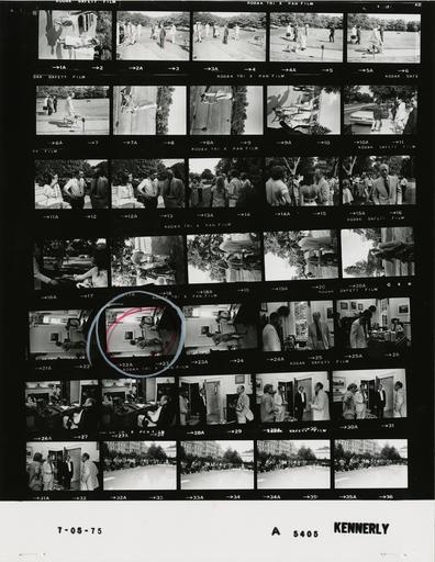 | Keywords: Ford A5405 NLGRF photo contact sheet (1975-07-01)(Gerald Ford Library).jpg White House Photographic Office WHPO is housed at the Gerald R Ford Presidential Library a branch of the National Archives and Records Administration NARA <br/><br/> This file is a 200 dpi photo contact sheet having images from roll of film A5405 of the August 9 1974 - January 20 1977 Gerald R Ford White House Photographic Office Series A0001-A9999 and B0001-B2886 photographs <br/><br/> The date on the photo contact sheet is the date the roll of film was processed not necessarily the date the photographs were taken See table below for additional details 1975-07-01 Gerald R Ford Presidential Library Image http //www fordlibrarymuseum gov/library/whphotos/A5405_NLGRF jpg A5405_NLGRF jpg from http //www fordlibrarymuseum gov/library/whphotos/19750701whpo pdf White House Photographs July 1 1975 of the http //www fordlibrarymuseum gov/Library/whphotos/whpo asp White House Photographic Collection page White House Photographic Office WHPO <br/> Creator David Hume Kennerly PD-USGov Institution Institution Gerald R Ford Presidential Library Table wikitable sortable + Photo contact sheet A5405 U S President Ford Administration Gerald R Ford Library Frame s Tone Subject proper Subject generic Names Geographic Location Photographer Date - 1A BW Trip to Camp David - Following Departure of the President of the Republic of Indonesia - Thurmont Maryland petting deer on red carpet Nancy Kissinger Thurmont MD Camp David -Helipad Kennerly 1975-07-01 - 2A-8A BW Trip to Camp David - Following Departure of the President of the Republic of Indonesia - Pet Golden Retriever - Thurmont Maryland on red carpet; GRF holding dog by collar; walking; all not in every frame; deer in some frames GRF Betty Ford Kissinger Liberty Others Thurmont MD Camp David -Helipad Kennerly 1975-07-01 - 9A-10A BW Return from Trip to Camp David GRF walking waving holding dog; entering limousine in 2nd frame GRF Betty Ford Liberty Others Ellipse Kennerly 1975-07-01 - 11A-16A BW Party for Susan Ford's 18th Birthday greeting handshaking; all not in every frame Susan Ford GRF Guests South Grounds Kennerly 1975-07-05 - 17A-20A BW Party for Susan Ford's 18th Birthday walking talking embracing kissing Susan Ford GRF South Grounds Kennerly 1975-07-05 - 21A-23A BW GRF seated; Jack standing wearing shorts barefoot GRF Jack Ford President's Private Office Kennerly 1975-07-05 - 24A-31A BW seated standing talking; all not in every frame; various angles and distances GRF Jack Ford Two Unidentified Men Secret Service President's Private Office Kennerly 1975-07-05 - 32A-25A BW First Swim for Media in New Swimming Pool GRF standing out side pool swimming in last 2 frames; media lining edge; OEOB in background; long shots GRF Media Swimming Pool - White House Grounds Kennerly 1975-07-05 Gerald R Ford Presidential Library and Museum-cooperation PD-USGov Contact sheets by the Ford White House July 1975 Photographs by David Hume Kennerly from 1975 |