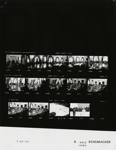 | Keywords: Ford A5412 NLGRF photo contact sheet (1975-07-07)(Gerald Ford Library).jpg White House Photographic Office WHPO is housed at the Gerald R Ford Presidential Library a branch of the National Archives and Records Administration NARA <br/><br/> This file is a 200 dpi photo contact sheet having images from roll of film A5412 of the August 9 1974 - January 20 1977 Gerald R Ford White House Photographic Office Series A0001-A9999 and B0001-B2886 photographs <br/><br/> The date on the photo contact sheet is the date the roll of film was processed not necessarily the date the photographs were taken See table below for additional details 1975-07-07 Gerald R Ford Presidential Library Image http //www fordlibrarymuseum gov/library/whphotos/A5412_NLGRF jpg A5412_NLGRF jpg from http //www fordlibrarymuseum gov/library/whphotos/19750707whpo pdf White House Photographs July 7 1975 of the http //www fordlibrarymuseum gov/Library/whphotos/whpo asp White House Photographic Collection page White House Photographic Office WHPO - Schumacher PD-USGov Institution Institution Gerald R Ford Presidential Library Table wikitable sortable + Photo contact sheet A5412 U S President Ford Administration Gerald R Ford Library Frame s Tone Subject proper Subject generic Names Geographic Location Photographer Date - 9-20 BW Meeting With Governors Regarding Highway Message Signing Ceremony greeting handshaking; seated around table; various angles and distances; all not in frames GRF Govs Ray Rampton Moore O'Callaghan Bennett; Coleman Theodore Lutz Joseph Coupal Cannon Falk Raoul-Duval Nessen Friedersdorf Cabinet Room Schumacher 1975-07-07 - 21 BW in pool GRF Swimming Pool - White House Grounds Schumacher 1975-07-07 - 22 BW standing on pool edge talking; GRF in housecoat; OEOB in background GRF Unidentified Man Swimming Pool - White House Grounds Schumacher 1975-07-07 Gerald R Ford Presidential Library and Museum-cooperation PD-USGov Contact sheets by the Ford White House July 1975 |