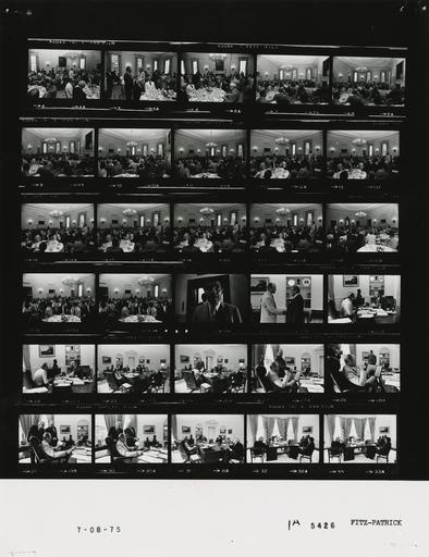Keywords: Ford A5426 NLGRF photo contact sheet (1975-07-09)(Gerald Ford Library).jpg White House Photographic Office WHPO is housed at the Gerald R Ford Presidential Library a branch of the National Archives and Records Administration NARA <br/><br/> This file is a 200 dpi photo contact sheet having images from roll of film A5426 of the August 9 1974 - January 20 1977 Gerald R Ford White House Photographic Office Series A0001-A9999 and B0001-B2886 photographs <br/><br/> The date on the photo contact sheet is the date the roll of film was processed not necessarily the date the photographs were taken See table below for additional details 1975-07-09 Gerald R Ford Presidential Library Image http //www fordlibrarymuseum gov/library/whphotos/A5426_NLGRF jpg A5426_NLGRF jpg from http //www fordlibrarymuseum gov/library/whphotos/19750709whpo pdf White House Photographs July 9 1975 of the http //www fordlibrarymuseum gov/Library/whphotos/whpo asp White House Photographic Collection page White House Photographic Office WHPO - Fitz-Patrick PD-USGov Institution Institution Gerald R Ford Presidential Library Table wikitable sortable + Photo contact sheet A5426 U S President Ford Administration Gerald R Ford Library Frame s Tone Subject proper Subject generic Names Geographic Location Photographer Date - 4-10 BW Breakfast Meeting with Members of Congress to Discuss Military Aid to Republic of Turkey seated around tables eating talking; various angles and distances; all not in every frame GRF Members of Congress; Kissinger Sisco Macomber McCloskey Ellsworth Rumsfeld Marsh Friedersdorf Scowcroft Loen Wolthius State Dining Room Fitz-Patrick 1975-07-09 - 21 BW unidentified man Fitz-Patrick 1975-07-09 - 22-24 BW Vice President A G Becker and Company greeting handshaking in 1st frame; seated around desk in last 2 GRF William Kabaker Oval Office Fitz-Patrick 1975-07-09 - 25-26 BW Meeting with Postmaster General and Director Federal Mediation and Conciliation Service to Discuss Contract Negotiations with the Postal Union seated around desk; Bailar standing in 2nd frame GRF Usery Bailar Marsh Cannon Oval Office Fitz-Patrick 1975-07-09 - 27-28 BW Postmaster General GRF seated looking at stamps; Bailar standing nearby GRF Bailar Oval Office Fitz-Patrick 1975-07-09 - 29-30 BW Postmaster General; Director Federal Mediation and Conciliation Service GRF seated looking at stamps; Bailar and Usery standing nearby GRF Bailar Usery Oval Office Fitz-Patrick 1975-07-09 - 31-32 BW Meeting with Postmaster General and Director Federal Mediation and Conciliation Service to Discuss Contract Negotiations with the Postal Union seated around desk; various angles GRF Usery Bailar Marsh Cannon Oval Office Fitz-Patrick 1975-07-09 Gerald R Ford Presidential Library and Museum-cooperation PD-USGov Contact sheets by the Ford White House July 1975 |