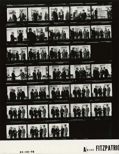 Keywords: Ford A9158 NLGRF photo contact sheet (1976-04-08)(Gerald Ford Library).jpg White House Photographic Office WHPO is housed at the Gerald R Ford Presidential Library a branch of the National Archives and Records Administration NARA <br/><br/> This file is a 200 dpi photo contact sheet having images from roll of film A9158 of the August 9 1974 - January 20 1977 Gerald R Ford White House Photographic Office Series A0001-A9999 and B0001-B2886 photographs <br/><br/> The date on the photo contact sheet is the date the roll of film was processed not necessarily the date the photographs were taken See table below for additional details 1976-04-08 Gerald R Ford Presidential Library Image http //www fordlibrarymuseum gov/library/whphotos/A9158_NLGRF jpg A9158_NLGRF jpg from http //www fordlibrarymuseum gov/library/whphotos/19760408whpo pdf White House Photographs April 8 1976 of the http //www fordlibrarymuseum gov/Library/whphotos/whpo asp White House Photographic Collection page White House Photographic Office WHPO - Fitz-Patrick PD-USGov Institution Institution Gerald R Ford Presidential Library Table wikitable sortable + Photo contact sheet A9158 U S President Ford Administration Gerald R Ford Library Frame s Tone Subject proper Subject generic Names Geographic Location Photographer Date - 3 BW Congressional Hour Present Crocheted Painting; US Senator from Maine ME standing handshaking GRF Sen William D Hathaway Oval Office Fitz-Patrick 1976-04-08 - 4-7 BW Congressional Hour Present Crocheted Painting; US Senator from Maine ME ; Resident of Caribou Maine Husband Son standing handshaking GRF Sen William D Hathaway Mrs Faris Stella Corey Faris Corey Lionel Corey Oval Office Fitz-Patrick 1976-04-08 - 8 BW Congressional Hour Present 150th Anniversary Coin Set; US Senator from Connecticut CT standing handshaking GRF Sen Lowell Weicker Jr Oval Office Fitz-Patrick 1976-04-08 - 9-16 BW Congressional Hour Present 150th Anniversary Coin Set; US Senator from Connecticut CT entering handshaking; standing holding coin set; all not in every frame GRF Sen Lowell Weicker Jr Jack Elmgren Leonard Henry Bucher John Andrews Johnson Oval Office Fitz-Patrick 1976-04-08 - 17 BW Fitz-Patrick 1976-04-08 - 18-19 BW Congressional Hour Present 2 Billionth Copy of New Testament by American Bible Society; US Senator from Rhode Island RI standing handshaking GRF Sen Claiborne Pell Oval Office Fitz-Patrick 1976-04-08 - 20-35 BW Congressional Hour Present 2 Billionth Copy of New Testament by American Bible Society; US Senator from Rhode Island RI standing holding coin set; all not in every frame GRF Sen Claiborne Pell; Edmund Wagner James Nettinga Oval Office Fitz-Patrick 1976-04-08 Gerald R Ford Presidential Library and Museum-cooperation PD-USGov Contact sheets by the Ford White House April 1976