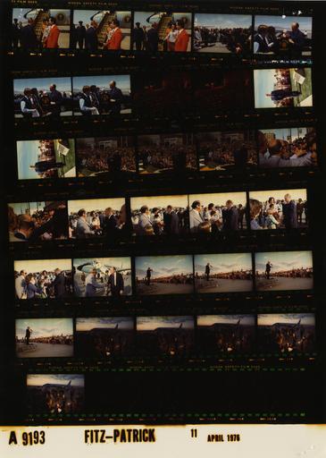Keywords: Ford A9193 NLGRF photo contact sheet (1976-04-10)(Gerald Ford Library).jpg White House Photographic Office WHPO is housed at the Gerald R Ford Presidential Library a branch of the National Archives and Records Administration NARA <br/><br/> This file is a 200 dpi photo contact sheet having images from roll of film A9193 of the August 9 1974 - January 20 1977 Gerald R Ford White House Photographic Office Series A0001-A9999 and B0001-B2886 photographs <br/><br/> The date on the photo contact sheet is the date the roll of film was processed not necessarily the date the photographs were taken See table below for additional details 1976-04-10 Gerald R Ford Presidential Library Image http //www fordlibrarymuseum gov/library/whphotos/A9193_NLGRF jpg A9193_NLGRF jpg from http //www fordlibrarymuseum gov/library/whphotos/19760410whpo pdf White House Photographs April 10 1976 of the http //www fordlibrarymuseum gov/Library/whphotos/whpo asp White House Photographic Collection page White House Photographic Office WHPO - Fitz-Patrick PD-USGov Institution Institution Gerald R Ford Presidential Library Table wikitable sortable + Photo contact sheet A9193 U S President Ford Administration Gerald R Ford Library Frame s Tone Subject proper Subject generic Names Geographic Location Photographer Date - 3-5 Color Trip to Texas-Airport Departure; Airport Managers V P Southwest Airlines handshaking on tarmac at foot of Air Force One ramp GRF Howard McGready Cary Green Jack Mercer Dallas TX Love Field Fitz-Patrick 1976-04-10 - 6 Color Trip to Texas-Q A Session with Press-Remarks; Airport Arrival all standing on tarmac; GRF at microphone;plane wings in background GRF Media Secret Service El Paso TX El Paso International Airport Fitz-Patrick 1976-04-10 - 7-9 Color Trip to Texas-Airport Arrival; El Paso Jaycees Tshirt Presentation standing by limousine on tarmac GRF holding El Paso Jaycees t-shirt GRF 2 Unidentified Men El Paso TX El Paso International Airport Fitz-Patrick 1976-04-10 - 10-11 Color Trip to Texas; 78th Annual Convention of Texas Grain and Feed Association; Remarks; US Senator from Texas TX GRF at podium GRF Sen John Tower George W Jones Robert L Parker Raymond R Nolen Frank Hemmen El Paso TX El Paso Civic Center-Auditorium Fitz-Patrick 1976-04-10 - 12-13 Color Trip to Texas-El Paso Bicentennial Commemoration Honoring Servicemen and Unveiling of Dedication Plaque for War Memorial standing by dedication plaque GRF El Paso TX War Memorial Plaza Fitz-Patrick 1976-04-10 - 14-16 Color Trip to Texas-El Paso Bicentennial Commemoration Honoring Servicemen and Unveiling of Dedication Plaque for War Memorial-Remarks standing at podium before standing crowd; city of El Paso in background GRF Crowd El Paso TX War Memorial Plaza Fitz-Patrick 1976-04-10 - 17-18 Color Trip to Texas-El Paso Bicentennial Commemoration Honoring Servicemen and Unveiling of Dedication Plaque for War Memorial-departing from working crowd in downtown El Paso GRF Crowd El Paso TX War Memorial Plaza Fitz-Patrick 1976-04-10 - 19-23 Color Trip to Texas-Airport Departure all standing on tarmac; GRF handshaking with family; GRF Unidentified Family; Media Secret Service Amarillo TX Amarillo Air Terminal Fitz-Patrick 1976-04-10 - 24 Color Trip to Texas-Airport Departure standing handshaking in front of plane GRF Unidentified Man Air Force One Amarillo TX Amarillo Air Terminal Fitz-Patrick 1976-04-10 - 25-28 Color Trip to Texas-Airport Arrival-Remarks GRF standing on platform speaking to roped in crowd; Welcome to Amarillo banner; sunset in background GRF Crowd Secret Service Amarillo TX Amarillo Air Terminal Fitz-Patrick 1976-04-10 - 29-33 Color Trip to Texas-Airport Arrival-Q A Session with Press; Air Force One; plane GRF standing before a half circle of reporters talking; dramatic lighting; Air Force One airplane standing on tarmac in background; sunset in background GRF Media Air Force One Amarillo TX Amarillo Air Terminal Fitz-Patrick 1976-04-10 Gerald R Ford Presidential Library and Museum-cooperation PD-USGov Contact sheets by the Ford White House April 1976