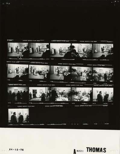 Keywords: Ford A9221 NLGRF photo contact sheet (1976-04-12)(Gerald Ford Library).jpg White House Photographic Office WHPO is housed at the Gerald R Ford Presidential Library a branch of the National Archives and Records Administration NARA <br/><br/> This file is a 200 dpi photo contact sheet having images from roll of film A9221 of the August 9 1974 - January 20 1977 Gerald R Ford White House Photographic Office Series A0001-A9999 and B0001-B2886 photographs <br/><br/> The date on the photo contact sheet is the date the roll of film was processed not necessarily the date the photographs were taken See table below for additional details 1976-04-12 Gerald R Ford Presidential Library Image http //www fordlibrarymuseum gov/library/whphotos/A9221_NLGRF jpg A9221_NLGRF jpg from http //www fordlibrarymuseum gov/library/whphotos/19760412whpo pdf White House Photographs April 12 1976 of the http //www fordlibrarymuseum gov/Library/whphotos/whpo asp White House Photographic Collection page White House Photographic Office WHPO - Thomas PD-USGov Institution Institution Gerald R Ford Presidential Library Table wikitable sortable + Photo contact sheet A9221 U S President Ford Administration Gerald R Ford Library Frame s Tone Subject proper Subject generic Names Geographic Location Photographer Date - 3A-13A BW Reception for President Ford Committee PFC Staff and Volunteers Republican National Committee Staff and White House Staff- Remarks; PFC Chairman Morton standing onstage; Morton introduces GRF; GRF remarks; BF remarks; departing platform handshaking GRF Betty Ford Morton East Room Thomas 1976-04-12 - 14A BW Reception for President Ford Committee PFC Staff and Volunteers Republican National Committee Staff and White House Staff walking to State Dining Room GRF Betty Ford Others Cross Hall Thomas 1976-04-12 - 15A-16A BW Reception for President Ford Committee PFC Staff and Volunteers Republican National Committee Staff and White House Staff standing by buffet table eating; waiter carving meat GRF Cheney Jim Connor Others Waiter State Dining Room Thomas 1976-04-12 - 17A-18A BW Reception for President Ford Committee PFC Staff and Volunteers Republican National Committee Staff and White House Staff - Special Assistant to the President for Minority Affairs standing talking GRF John Calhoun State Dining Room Thomas 1976-04-12 Gerald R Ford Presidential Library and Museum-cooperation PD-USGov Contact sheets by the Ford White House April 1976 |