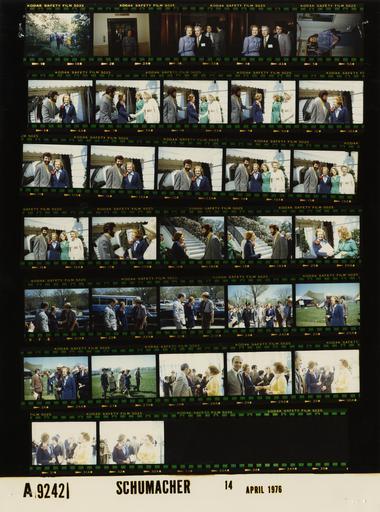 | Keywords: Ford A9242 NLGRF photo contact sheet (1976-04-13)(Gerald Ford Library).jpg  White House Photographic Office WHPO is housed at the Gerald R Ford Presidential Library a branch of the National Archives and Records Administration NARA <br/><br/> This file is a 200 dpi photo contact sheet having images from roll of film A9242 of the August 9 1974 - January 20 1977 Gerald R Ford White House Photographic Office Series A0001-A9999 and B0001-B2886 photographs <br/><br/> The date on the photo contact sheet is the date the roll of film was processed not necessarily the date the photographs were taken See table below for additional details 1976-04-13 Gerald R Ford Presidential Library Image http //www fordlibrarymuseum gov/library/whphotos/A9242_NLGRF jpg A9242_NLGRF jpg from http //www fordlibrarymuseum gov/library/whphotos/19760413whpo pdf White House Photographs April 13 1976 of the http //www fordlibrarymuseum gov/Library/whphotos/whpo asp White House Photographic Collection page White House Photographic Office WHPO <br/> Creator David Hume Kennerly PD-USGov Institution Institution Gerald R Ford Presidential Library Table wikitable sortable + Photo contact sheet A9242 U S President Ford Administration Gerald R Ford Library Frame s Tone Subject proper Subject generic Names Geographic Location Photographer Date - 1 BW Q A Session with Members of American Society of Newspaper Editors long view GRF at podium large crowd gathered;leafy trees GRF Editors Secret Service Rose Garden Kennerly 1976-04-13 - 2 BW Reception for Members of American Society of Newspaper Editors exiting elevator GRF Betty Ford State Floor-Elevator Kennerly 1976-04-13 - 3-4 BW Reception for Members of American Society of Newspaper Editors standing together in doorway Betty Ford Unidentified Man Secret Service State Floor-Elevator Kennerly 1976-04-13 - 6-20 Color First Lady's Visit to the New White House Visitors' Waiting Area-Departing For; Greeting White House Visitors handshaking posing next to awning; man with beard;all not in every frame Betty Ford Unidentified Man 2 Women North Entrance Schumacher 1976-04-14 - 21-23 Color First Lady's Visit to the New White House Visitors' Waiting Area-Departing For; National Park Service NPS Ranger in Charge of Visitor's Waiting Area; Director of the Visitors' Office Farrell standing by limousine handshaking Betty Ford Ranger Joe Lawler Mike Farrell South Driveway Schumacher 1976-04-14 - 24-32 Color First Lady's Visit to the New White House Visitors' Waiting Area-Departing For; National Park Service NPS Ranger in Charge of Visitor's Waiting Area; Director of the Visitors' Office Farrell walking on grounds Ranger pointing greeting others; Farrell 29 ; all not in evert frame Betty Ford Mike Farrell Ranger Joe Lawler Military Secret Service Crowd Helen Thomas Weidenfeld Washington DC The Ellipse Schumacher 1976-04-14 Gerald R Ford Presidential Library and Museum-cooperation PD-USGov Contact sheets by the Ford White House April 1976 Photographs by David Hume Kennerly from 1976 |