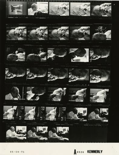 Keywords: Ford A9526 NLGRF photo contact sheet (1976-05-04)(Gerald Ford Library).jpg White House Photographic Office WHPO is housed at the Gerald R Ford Presidential Library a branch of the National Archives and Records Administration NARA <br/><br/> This file is a 200 dpi photo contact sheet having images from roll of film A9526 of the August 9 1974 - January 20 1977 Gerald R Ford White House Photographic Office Series A0001-A9999 and B0001-B2886 photographs <br/><br/> The date on the photo contact sheet is the date the roll of film was processed not necessarily the date the photographs were taken See table below for additional details 1976-05-04 Gerald R Ford Presidential Library Image http //www fordlibrarymuseum gov/library/whphotos/A9526_NLGRF jpg A9526_NLGRF jpg from http //www fordlibrarymuseum gov/library/whphotos/19760504whpo pdf White House Photographs May 4 1976 of the http //www fordlibrarymuseum gov/Library/whphotos/whpo asp White House Photographic Collection page White House Photographic Office WHPO <br/> Creator David Hume Kennerly PD-USGov Institution Institution Gerald R Ford Presidential Library Table wikitable sortable + Photo contact sheet A9526 U S President Ford Administration Gerald R Ford Library Frame s Tone Subject proper Subject generic Names Geographic Location Photographer Date - 2A BW President's Private Study; photograph hanging on wall framed signed photograph of Egyptian President Anwar Sadat Second Floor - President's Private Study Kennerly 1976-05-04 - 3A-23A BW Receiving Telephoned Reports on Indiana and Georgia Primaries seated talking on telephone; glasses propped on forehead in shirtsleeves; close ups GRF Second Floor - President's Private Study Kennerly 1976-05-04 - 24A-34A BW Watching Television Reports on Indiana and Georgia Primaries seated at small desk writing; glasses propped on forehead in shirtsleeves; close ups GRF Second Floor - President's Private Study Kennerly 1976-05-04 Gerald R Ford Presidential Library and Museum-cooperation PD-USGov Contact sheets by the Ford White House May 1976 Photographs by David Hume Kennerly from 1976 |