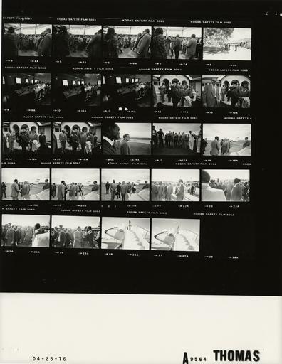 | Keywords: Ford A9564 NLGRF photo contact sheet (1976-04-24)(Gerald Ford Library).jpg White House Photographic Office WHPO is housed at the Gerald R Ford Presidential Library a branch of the National Archives and Records Administration NARA <br/><br/> This file is a 200 dpi photo contact sheet having images from roll of film A9564 of the August 9 1974 - January 20 1977 Gerald R Ford White House Photographic Office Series A0001-A9999 and B0001-B2886 photographs <br/><br/> The date on the photo contact sheet is the date the roll of film was processed not necessarily the date the photographs were taken See table below for additional details 1976-04-24 Gerald R Ford Presidential Library Image http //www fordlibrarymuseum gov/library/whphotos/A9564_NLGRF jpg A9564_NLGRF jpg from http //www fordlibrarymuseum gov/library/whphotos/19760424whpo pdf White House Photographs April 24 1976 of the http //www fordlibrarymuseum gov/Library/whphotos/whpo asp White House Photographic Collection page White House Photographic Office WHPO - Thomas PD-USGov Institution Institution Gerald R Ford Presidential Library Table wikitable sortable + Photo contact sheet A9564 U S President Ford Administration Gerald R Ford Library Frame s Tone Subject proper Subject generic Names Geographic Location Photographer Date - 9A-11A BW SecState Trip to Africa; Luncheon Meeting with Kenyan President Jomo Kenyatta; US Amb To Kenya Marshall seated on both sides of long dining table Kenyatta seated at head of table cane on table; Marshall seated next to HAK Kissinger Jomo Kenyatta Amb Anthony D Marshall Charles W Robinson staff African Dignitaries Nakuru Kenya Africa President Kenyatta's Country Residence - Canopied Arena Thomas 1976-04-24 - 16A-25A BW SecState Trip to Africa; Departing Kenya standing on tarmac handshaking talking Kissinger Charles W Robinson; Amb Anthony D Marshall African Dignitaries Media Nairobi Kenya Africa Nairobi Airport Thomas 1976-04-24 - 26A-27A BW SecState Trip to Africa--Departing Kenya; SecState standing wavaing at top of ramp of plane Kissinger Nairobi Kenya Africa Nairobi Airport Thomas 1976-04-24 - 4A-7A BW SecState Trip to Africa; Arrival Ceremony at Nakuru Landing Field; Natives Welcoming Dance; ABC Newsman Koppel; Masai standing near dancers in native dress holding sticks watching talking; Koppel listening to Kissinger Kissinger Jomo Kenyatta Native Masai Dancers Ted Koppel African Officials Police Media Unidentified American Woman Nakuru Kenya Africa Nakuru Landing Field Thomas 1976-04-25 - 8A BW SecState Trip to Africa--Arrival at Kenyan President Jomo Kenyatta's Country Residence milling around entrance standing in courtyard talking Unidentified African American persons Nakuru Kenya Africa President Kenyatta's Country Residence - Exterior Thomas 1976-04-25 - 12A-15A BW SecState Trip to Africa; Leaving Kenyan President Jomo Kenyatta's Country Residence; US Amb to Kenya Marshall; State Dept Spokesman Trattner departing building; Kenyatta and HAK talking shaking hands Marshall standng behind them Kissinger Jomo Kenyatta John Trattner Amb Anthony D Marshall Charles W Robinson African Dignitaries staff Nakuru Kenya Africa President Kenyatta's Country Residence - Exterior Thomas 1976-04-25 Gerald R Ford Presidential Library and Museum-cooperation PD-USGov Contact sheets by the Ford White House April 1976 |