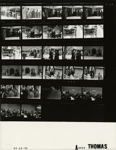 | Keywords: Ford A9565 NLGRF photo contact sheet (1976-04-25)(Gerald Ford Library).jpg White House Photographic Office WHPO is housed at the Gerald R Ford Presidential Library a branch of the National Archives and Records Administration NARA <br/><br/> This file is a 200 dpi photo contact sheet having images from roll of film A9565 of the August 9 1974 - January 20 1977 Gerald R Ford White House Photographic Office Series A0001-A9999 and B0001-B2886 photographs <br/><br/> The date on the photo contact sheet is the date the roll of film was processed not necessarily the date the photographs were taken See table below for additional details 1976-04-25 Gerald R Ford Presidential Library Image http //www fordlibrarymuseum gov/library/whphotos/A9565_NLGRF jpg A9565_NLGRF jpg from http //www fordlibrarymuseum gov/library/whphotos/19760425whpo pdf White House Photographs April 25 1976 of the http //www fordlibrarymuseum gov/Library/whphotos/whpo asp White House Photographic Collection page White House Photographic Office WHPO - Thomas PD-USGov Institution Institution Gerald R Ford Presidential Library Table wikitable sortable + Photo contact sheet A9565 U S President Ford Administration Gerald R Ford Library Frame s Tone Subject proper Subject generic Names Geographic Location Photographer Date - 3 BW SecState Trip to Africa--Visit to Kenyan President Jomo Kenyatta's Country Residence standing around edge of canopy out of focus Media Unidentified Africans Nakuru Kenya Africa President Kenyatta's Country Residence - Canopied Arena Thomas 1976-04-25 - 4-8 BW SecState Trip to Africa; Visit to Kenyan President Jomo Kenyatta's Country Residence; Harambee national slogan meaning Let us work together or Unity ; US Amb to Kenya Marshall standing on platform shouting Harambee to audience; Kenyatta at microphone flicking his whisk hands in air Kissinger smiling Kissinger Jomo Kenyatta Amb Anthony D Marshall African Dignitaries Nakuru Kenya Africa President Kenyatta's Country Residence - Canopied Arena Thomas 1976-04-25 - 9-16 BW SecState Trip to Africa--Visit to Kenyan President Jomo Kenyatta's Country Residence standing together huddled under a tree and on courtyard talking holding drinks; all not in every frame Kissinger staff Charles W Robinson African Dignitaries Nakuru Kenya Africa President Kenyatta's Country Residence - Exterior Thomas 1976-04-25 - 17-19 BW SecState Trip to Africa; Visit to Kenyan President Jomo Kenyatta's Country Residence departing arched doorway of building Jomo Kenyatta Nakuru Kenya Africa President Kenyatta's Country Residence - Exterior Thomas 1976-04-25 - 20-22 BW SecState Trip to Africa; Visit to Kenyan President Jomo Kenyatta's Country Residence; US Amb to Kenya Marshall standing on steps of arched doorway Kenyatta holding his whisk Kissinger Jomo Kenyatta African Officials Amb Anthony D Marshall Nakuru Kenya Africa President Kenyatta's Country Residence - Exterior Thomas 1976-04-25 - 23-24 BW SecState Trip to Africa; Visit to Kenyan President Jomo Kenyatta's Country Residence; US Amb to Kenya Marshall standing on steps of arched doorway; Kenyatta flicking his whisk Kissinger Jomo Kenyatta; John Trattner Charles W Robinson Amb Anthony D Marshall staff African Dignitaries Nakuru Kenya Africa President Kenyatta's Country Residence - Exterior Thomas 1976-04-25 - 25 BW Thomas 1976-04-25 - 26-29 BW SecState Trip to Africa--Press Conference Kissinger talking seated with dignitaries at table with Harambee insignia on wall; press in foreground; departingtable Kissinger African Media Amb Anthony D Marshall Charles W Robinson Nakuru Kenya Africa President Kenyatta's Country Residence Thomas 1976-04-25 Gerald R Ford Presidential Library and Museum-cooperation PD-USGov Contact sheets by the Ford White House April 1976 |