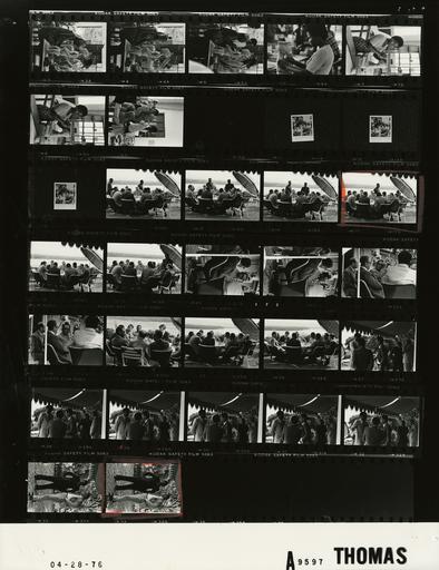 Keywords: Ford A9597 NLGRF photo contact sheet (1976-04-29)(Gerald Ford Library).jpg White House Photographic Office WHPO is housed at the Gerald R Ford Presidential Library a branch of the National Archives and Records Administration NARA <br/><br/> This file is a 200 dpi photo contact sheet having images from roll of film A9597 of the August 9 1974 - January 20 1977 Gerald R Ford White House Photographic Office Series A0001-A9999 and B0001-B2886 photographs <br/><br/> The date on the photo contact sheet is the date the roll of film was processed not necessarily the date the photographs were taken See table below for additional details 1976-04-29 Gerald R Ford Presidential Library Image http //www fordlibrarymuseum gov/library/whphotos/A9597_NLGRF jpg A9597_NLGRF jpg from http //www fordlibrarymuseum gov/library/whphotos/19760429whpo pdf White House Photographs April 29 1976 of the http //www fordlibrarymuseum gov/Library/whphotos/whpo asp White House Photographic Collection page White House Photographic Office WHPO - Thomas PD-USGov Institution Institution Gerald R Ford Presidential Library Table wikitable sortable + Photo contact sheet A9597 U S President Ford Administration Gerald R Ford Library Frame s Tone Subject proper Subject generic Names Geographic Location Photographer Date - 3A-9A BW SecState Trip to Africa--SecState Trip to Africa--Zairian Native Arts and Crafts; Sculpture carving wood sculptures in sculpture studio Young Zairian Women man Kinshasa Zaire Africa Sculpture Studio Thomas 1976-04-29 - 10A BW SecState Trip to Africa Kinshasa Zaire Thomas 1976-04-29 - 11A-13A BW SecState Trip to Africa-Unidentified Snapshot Polaroid snapshot of four persons standing in a marketplace Unidentified Africans Kinshasa Zaire Africa Thomas 1976-04-29 - 14A-34A BW SecState Trip to Africa; Breakfast Meeting with Zairian President Mobutu Sese Seko-final meeting; Asst SecState for African Affairs Schaufele; Zairian Foreign Minister Karl-i-Bond seated at round table on grass by river; standing on grass under awning; Schaufele Nguza frames 33 and 34 Kissinger Mobutu Sese Seko Jean Nguza Karl-i-Bond; Interpreter; Amb Walter Cutler William E Schaufele Jr Peter J Rodman African Officials Kinshasa Zaire Africa President's Palace - Pavillon on grass overlooking Congo River Thomas 1976-04-30 Gerald R Ford Presidential Library and Museum-cooperation PD-USGov Contact sheets by the Ford White House April 1976 |