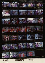 | Keywords: Ford A9695 NLGRF photo contact sheet (1976-04-20)(Gerald Ford Library).jpg White House Photographic Office WHPO is housed at the Gerald R Ford Presidential Library a branch of the National Archives and Records Administration NARA <br/><br/> This file is a 200 dpi photo contact sheet having images from roll of film A9695 of the August 9 1974 - January 20 1977 Gerald R Ford White House Photographic Office Series A0001-A9999 and B0001-B2886 photographs <br/><br/> The date on the photo contact sheet is the date the roll of film was processed not necessarily the date the photographs were taken See table below for additional details 1976-04-20 Gerald R Ford Presidential Library Image http //www fordlibrarymuseum gov/library/whphotos/A9695_NLGRF jpg A9695_NLGRF jpg from http //www fordlibrarymuseum gov/library/whphotos/19760420whpo pdf White House Photographs April 20 1976 of the http //www fordlibrarymuseum gov/Library/whphotos/whpo asp White House Photographic Collection page White House Photographic Office WHPO - Schumacher PD-USGov Institution Institution Gerald R Ford Presidential Library Table wikitable sortable + Photo contact sheet A9695 U S President Ford Administration Gerald R Ford Library Frame s Tone Subject proper Subject generic Names Geographic Location Photographer Date - 18A Color First Lady Campaign Trip to Texas-Visit to PFC Headquarters-Departing from standing waving by doorway Betty Ford Others Harlingen TX President Ford Committee PFC Headquarters Schumacher 1976-04-20 - 19A-21A Color First Lady Campaign Trip to Texas-Visit to Austin Elementary School Bicentennial BF Littleton on stage; handshaking with children on stage holding name cards; children in Bicentennial clothing Betty Ford Vance Littleton Children Harlingen TX Austin Elementary School - Auditorium Schumacher 1976-04-20 - 22A-24A Color First Lady Campaign Trip to Texas-Airport Departure; Bicentennial little boys and girl standing on tarmac wearing banners Dwight Eisenhower Mamie Eisenhower and John Fitzgerald Kennedy Eisenhower wearing military garb Children Harlingen TX Harlingen International Airport Schumacher 1976-04-20 - 25A-31A Color First Lady Campaign Trip to Texas-Airport Departure; Bicentennial BF bending to shake hands with children wearing banners Gerald Ford and Betty Ford; also Patricia Nixon Betty Ford Children Harlingen TX Harlingen International Airport Schumacher 1976-04-20 - 32A-33A Color First Lady Campaign Trip to Texas-Airport Departure; PFC officials standing together posing in front of C-9 Aircraft Betty Ford Unidentified Man 2 women Harlingen TX Harlingen International Airport Schumacher 1976-04-20 - 0A-4A Color First Lady Campaign Trip to Texas -Departing San Antonio handshaking at rope; greeting at curb; posing inside Betty Ford Crowd cub scouts; Unidentified women San Antonio TX San Antonion International Airport Schumacher 1976-04-20 - 5A Color First Lady Campaign Trip to Texas-Aboard C-9 seated on plane pen in hand smiling Betty Ford Enroute McAllen TX Aboard C-9 Schumacher 1976-04-20 - 6A-13A Color First Lady Campaign Trip to Texas-Airport Arrival; Yellow Roses walking from plane receiving yellow roses flowers from Crowe's bending receiving gift from child talking to woman; all may not be shown Betty Ford; Mayor Jack Whetsell Mr Mrs Tommy Beardmore Mrs Trammel Crowe Mrs Edward Wallace The McAllen Chamber of Commerce Greeters Children in patriotic costume Crowd McAllen TX Miller International Airport Schumacher 1976-04-20 - 14A Color First Lady Campaign Trip to Texas-PFC Volunteers Republican Women Picnic Luncheon entering handshaking receiving daisies Betty Ford Unidentified Woman Harlingen TX President Ford Committee PFC Headquarters Schumacher 1976-04-20 - 15A-17A Color First Lady Campaign Trip to Texas-Visit to PFC Headquarters-Making Campaign Call from PFC Telephone Center seated talking on telephone others standing behind; midrange Betty Ford PFC Officials staff Harlingen TX President Ford Committee PFC Headquarters Schumacher 1976-04-20 Gerald R Ford Presidential Library and Museum-cooperation PD-USGov Contact sheets by the Ford White House April 1976 |
