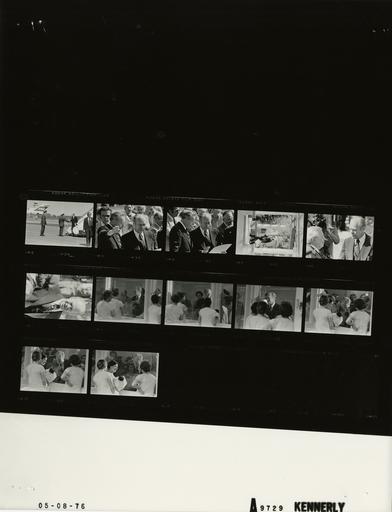 Keywords: Ford A9729 NLGRF photo contact sheet (1976-05-07)(Gerald Ford Library).jpg White House Photographic Office WHPO is housed at the Gerald R Ford Presidential Library a branch of the National Archives and Records Administration NARA <br/><br/> This file is a 200 dpi photo contact sheet having images from roll of film A9729 of the August 9 1974 - January 20 1977 Gerald R Ford White House Photographic Office Series A0001-A9999 and B0001-B2886 photographs <br/><br/> The date on the photo contact sheet is the date the roll of film was processed not necessarily the date the photographs were taken See table below for additional details 1976-05-07 Gerald R Ford Presidential Library Image http //www fordlibrarymuseum gov/library/whphotos/A9729_NLGRF jpg A9729_NLGRF jpg from http //www fordlibrarymuseum gov/library/whphotos/19760507whpo pdf White House Photographs May 7 1976 of the http //www fordlibrarymuseum gov/Library/whphotos/whpo asp White House Photographic Collection page White House Photographic Office WHPO <br/> Creator David Hume Kennerly PD-USGov Institution Institution Gerald R Ford Presidential Library Table wikitable sortable + Photo contact sheet A9729 U S President Ford Administration Gerald R Ford Library Frame s Tone Subject proper Subject generic Names Geographic Location Photographer Date - 2A BW Trip to Nebraska; Farm Forum; Airport Arrival - Omaha Nebraska GRF handshaking with military at bottom of ramp of plane GRF Military Secret Service Omaha NE Offutt Air Force Base Kennerly 1976-05-07 - 3A-4A BW Trip to Nebraska; Visit to President Ford Birthplace Park; Park Benefactor and COE Standard Chemical Manufacturing Paxson - Omaha Nebraska viewing document and Paxson pointing; Butz in frame 4A; GRF Paxon walking together; GRF talking with press boy scout GRF James M Paxson Pontius Crowd; Sec Earl Butz Media Boy Scout Omaha NE President Ford Birthplace Park Kennerly 1976-05-07 - 5A BW Trip to Nebraska; Visit to President Ford Birthplace Park; Park Benefactor and COE Standard Chemical Manufacturing Paxson - Omaha Nebraska walking under wood canopy; long shot GRF James M Paxson Omaha NE President Ford Birthplace Park Kennerly 1976-05-07 - 6A-7A BW Trip to Nebraska; Visit to President Ford Birthplace Park; Park Benefactor and COE Standard Chemical Manufacturing Paxson - Omaha Nebraska greeting handshaking; all not in both frames GRF Crowd Omaha NE President Ford Birthplace Park Kennerly 1976-05-07 - 8A-13A BW Trip to Nebraska; Ground-Breaking Ceremony for Two Additions to Archbishop Bergan-Mercy Hospital; Tour of Facility - Omaha Nebraska nurses facing GRF backs to camera; GRF smiles at newborn baby through glass window GRF nurses infant Media Omaha NE Archbishop Bergan-Mercy Hospital Kennerly 1976-05-07 Gerald R Ford Presidential Library and Museum-cooperation PD-USGov Contact sheets by the Ford White House May 1976 Photographs by David Hume Kennerly from 1976