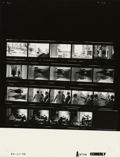 | Keywords: Ford A9746 NLGRF photo contact sheet (1976-05-08)(Gerald Ford Library).jpg White House Photographic Office WHPO is housed at the Gerald R Ford Presidential Library a branch of the National Archives and Records Administration NARA <br/><br/> This file is a 200 dpi photo contact sheet having images from roll of film A9746 of the August 9 1974 - January 20 1977 Gerald R Ford White House Photographic Office Series A0001-A9999 and B0001-B2886 photographs <br/><br/> The date on the photo contact sheet is the date the roll of film was processed not necessarily the date the photographs were taken See table below for additional details 1976-05-08 Gerald R Ford Presidential Library Image http //www fordlibrarymuseum gov/library/whphotos/A9746_NLGRF jpg A9746_NLGRF jpg from http //www fordlibrarymuseum gov/library/whphotos/19760508whpo pdf White House Photographs May 8 1976 of the http //www fordlibrarymuseum gov/Library/whphotos/whpo asp White House Photographic Collection page White House Photographic Office WHPO <br/> Creator David Hume Kennerly PD-USGov Institution Institution Gerald R Ford Presidential Library Table wikitable sortable + Photo contact sheet A9746 U S President Ford Administration Gerald R Ford Library Frame s Tone Subject proper Subject generic Names Geographic Location Photographer Date - 3-4 BW Trip to Missouri-Wreath-Laying Ceremony at Harry S Truman Gravesite standing in front of wreath talking to men with backs to camera GRF Independence MO Harry S Truman Presidential Library Kennerly 1976-05-08 - 5-6 BW White House Staff seated at desk working; wearing ear plugs Unidentified staff unidentified White House office Kennerly 1976-05-11 - 7-13 BW Meeting with Don Penny Schneider and BBD O Marketing Consultants Jordan and Light-enroute to; Pres BBD O Jordan; Batten Barton Durstine and Osborne Inc NY walking talking GRF Jim Jordan Jr ; Don Penny Schneider O'Donnell Colonnade Kennerly 1976-05-11 - 14-17 BW Meeting with Don Penny Schneider and BBD O Marketing Consultants Jordan and Light-enroute to; Pres BBD O Jordan; Exec VP Market Research Media Light; Batten Barton Durstine and Osborne Inc NY; standing by column talking; GRF pointing wearing glasses GRF Jim Jordan Jr Larry Light Truman Balcony Kennerly 1976-05-11 - 18-21 BW Watching Election Returns at Night seated with barelegs up on ottoman in bathrobe talking on phone GRF Second Floor - President's Study Kennerly 1976-05-11 Gerald R Ford Presidential Library and Museum-cooperation PD-USGov Contact sheets by the Ford White House May 1976 Photographs by David Hume Kennerly from 1976 |