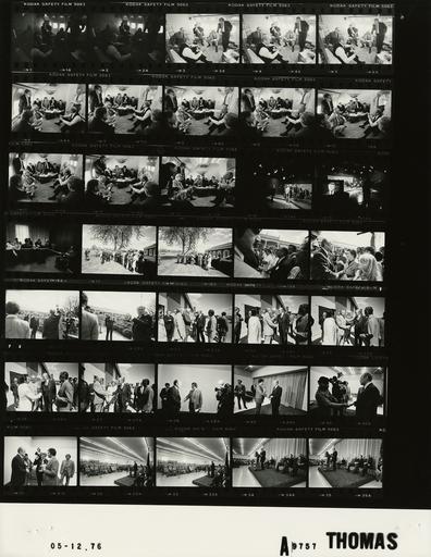 | Keywords: Ford A9757 NLGRF photo contact sheet (1976-05-12)(Gerald Ford Library).jpg White House Photographic Office WHPO is housed at the Gerald R Ford Presidential Library a branch of the National Archives and Records Administration NARA <br/><br/> This file is a 200 dpi photo contact sheet having images from roll of film A9757 of the August 9 1974 - January 20 1977 Gerald R Ford White House Photographic Office Series A0001-A9999 and B0001-B2886 photographs <br/><br/> The date on the photo contact sheet is the date the roll of film was processed not necessarily the date the photographs were taken See table below for additional details 1976-05-12 Gerald R Ford Presidential Library Image http //www fordlibrarymuseum gov/library/whphotos/A9757_NLGRF jpg A9757_NLGRF jpg from http //www fordlibrarymuseum gov/library/whphotos/19760512whpo pdf White House Photographs May 12 1976 of the http //www fordlibrarymuseum gov/Library/whphotos/whpo asp White House Photographic Collection page White House Photographic Office WHPO - Thomas PD-USGov Institution Institution Gerald R Ford Presidential Library Table wikitable sortable + Photo contact sheet A9757 U S President Ford Administration Gerald R Ford Library Frame s Tone Subject proper Subject generic Names Geographic Location Photographer Date - 1-13 BW Primary Campaign Trip to Michigan; Enroute to Michigan; US Representatives and Senator from Michigan MI seated in circle on plane talking; various angles and distances; all not in every frame GRF Sen Robert Griffin Reps William Broomfield Marvin Esch Phillip Rupper Garry Brown Elford Cederberg Guy Vander Jagt Edward Hutchinson Enroute AFB to Detroit-Wayne County Metropolitan Airport Air Force One Thomas 1976-05-12 - 14-15 BW Primary Campaign Trip to Michigan; Taping Television Interview with WXYZ-TV Anchors Kelly and LeGof - Southfield Michigan standing talking before interview; seated interviewing GRF Jack Kelly Jac LeGoff; Nessen Mead Southfield MI WXYZ-TV Studios - Studio A Thomas 1976-05-12 - 16 BW Primary Campaign Trip to Michigan; Interview with Editorial Board of Detroit Free Press Newspaper; Editor Stroud - Southfield Michigan seated at table; all may not be shown GRF Joe Strout George Neavoll David Cooper Judith Neuman Remer Tyson Judd Arnett Gene Calmen Tony Spina Cameraman Southfield MI WXYZ-TV Studios - Conference Room Thomas 1976-05-12 - 17-22 BW Primary Campaign Trip to Michigan; Photo Op with Unidentified Conference Group; WXYZ-TV General Manager Osborn; University of Michigan and NFL Football Player Kramer - Southfield Michigan GRF speaking to conference group posing with conference group; handshaking waving as departing; various angles and distances; all not in every frame GRF Ron Kramer Jim Osborn Unidentified Group of People Southfield MI Outside WXYZ-TV Studios Thomas 1976-05-12 - 23-27 BW Primary Campaign Trip to Michigan; Arrival for Meeting of Economic Club of Detroit; US Representative and Governor of Michigan MI standing outside handshaking GRF Gov William Millikin Ray MacDonald Russ Swaney Robert Paparelli Rep William Broomfield Bloomfield Hills MI Roma Hall Thomas 1976-05-12 - 28-31 BW Primary Campaign Trip to Michigan-Meeting of Economic Club of Detroit-Interview with WWJ-TV News Reporter Bob Vito; Roma Hall owner Paparelli standing handshaking filming speaking into microphone GRF Bob Vito; O'Donnell Robert Paparelli cameraman technicians Bloomfield Hills MI Roma Hall Thomas 1976-05-12 - 32-45 BW Primary Campaign Trip to Michigan-Meeting of Economic Club of Detroit-GRF Remarks; ECD Pres Swaney ECD Chrm MacDonald GRF at podium audience and platform guests seated; all may not be shown GRF Gov Wm Millikin US Rep Wm Broomfield R-MI Ray MacDonald Russ Swaney Sen Robert Griffin Rev H Coleman McGehee Bloomfield Hills MI Roma Hall-Exhibition Hall Thomas 1976-05-12 Gerald R Ford Presidential Library and Museum-cooperation PD-USGov Contact sheets by the Ford White House May 1976 |