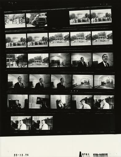 | Keywords: Ford A9761 NLGRF photo contact sheet (1976-05-12)(Gerald Ford Library).jpg White House Photographic Office WHPO is housed at the Gerald R Ford Presidential Library a branch of the National Archives and Records Administration NARA <br/><br/> This file is a 200 dpi photo contact sheet having images from roll of film A9761 of the August 9 1974 - January 20 1977 Gerald R Ford White House Photographic Office Series A0001-A9999 and B0001-B2886 photographs <br/><br/> The date on the photo contact sheet is the date the roll of film was processed not necessarily the date the photographs were taken See table below for additional details 1976-05-12 Gerald R Ford Presidential Library Image http //www fordlibrarymuseum gov/library/whphotos/A9761_NLGRF jpg A9761_NLGRF jpg from http //www fordlibrarymuseum gov/library/whphotos/19760512whpo pdf White House Photographs May 12 1976 of the http //www fordlibrarymuseum gov/Library/whphotos/whpo asp White House Photographic Collection page White House Photographic Office WHPO - Thomas PD-USGov Institution Institution Gerald R Ford Presidential Library Table wikitable sortable + Photo contact sheet A9761 U S President Ford Administration Gerald R Ford Library Frame s Tone Subject proper Subject generic Names Geographic Location Photographer Date - 3 BW Primary Campaign Trip to Michigan-Departing For; White House Visitors handshaking with group of individuals on White House lawn GRF O'Donnell Unidentified Visitors South Grounds Thomas 1976-05-12 - 4 BW Primary Campaign Trip to Michigan-Departing For; Marine I; Helicopter nose of helicopter on grass; GRF waving from cockpit-not very visible Marine I GRF South Grounds Thomas 1976-05-12 - 6-9 BW Unidentified Vickerman Group standing in group in front of White House; Truman Balcony John Vickerman Unidentified Men South Grounds Thomas 1976-05-12 - 10-14 BW Bicentennial Demonostration by Unidentified Children kneeling on grass holding American flags; Mitler standing Milt Mitler Unidentified School Children South Grounds Thomas 1976-05-12 - 15-20 BW White House Staff smiling into camera; standing in front of screened off hallway Unidentified staff First Floor-Hall Thomas 1976-05-12 - 21-29 BW White House Guards hallway guards in uniform; Lady Bird Johnson official White House portrait hanging on wall Unidentified Men First Floor-Hall Thomas 1976-05-12 Gerald R Ford Presidential Library and Museum-cooperation PD-USGov Contact sheets by the Ford White House May 1976 |
