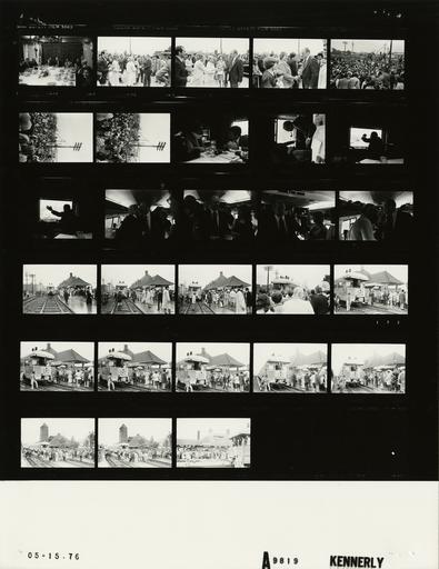 | Keywords: Ford A9819 NLGRF photo contact sheet (1976-05-15)(Gerald Ford Library).jpg White House Photographic Office WHPO is housed at the Gerald R Ford Presidential Library a branch of the National Archives and Records Administration NARA <br/><br/> This file is a 200 dpi photo contact sheet having images from roll of film A9819 of the August 9 1974 - January 20 1977 Gerald R Ford White House Photographic Office Series A0001-A9999 and B0001-B2886 photographs <br/><br/> The date on the photo contact sheet is the date the roll of film was processed not necessarily the date the photographs were taken See table below for additional details 1976-05-15 Gerald R Ford Presidential Library Image http //www fordlibrarymuseum gov/library/whphotos/A9819_NLGRF jpg A9819_NLGRF jpg from http //www fordlibrarymuseum gov/library/whphotos/19760515whpo pdf White House Photographs May 15 1976 of the http //www fordlibrarymuseum gov/Library/whphotos/whpo asp White House Photographic Collection page White House Photographic Office WHPO <br/> Creator David Hume Kennerly PD-USGov Institution Institution Gerald R Ford Presidential Library Table wikitable sortable + Photo contact sheet A9819 U S President Ford Administration Gerald R Ford Library Frame s Tone Subject proper Subject generic Names Geographic Location Photographer Date - 1A BW Primary Campaign Whistle-Stop Tour of Michigan-Breakfast Interview with Executives of Booth Newspapers of Michigan seated at table GRF Executives Flint MI Holiday Inn-Banquet Room Kennerly 1976-05-15 - 2A-7A BW Primary Campaign Whistle-Stop Tour of Michigan-US Rep R-MI ; Michigan PFC Chairman Fletcher; Flint PFC Chairman Mottern; 7th Congressional District GOP Chairman Laro; State Rep Edwards Amtrak Station Master Brandeis; US Representative from Michigan MI standing handshaking all may not be shown; GRF working crowd GRF Rep Mrs Elford Cederberg Peter B Fletcher Loraine Mottern David Laro F Robert Edwards Mary Ann Brandeis; Crowd Media Flint MI Amtrak Rail Passenger Station Kennerly 1976-05-15 - 8A-15A BW Primary Campaign Whistle-Stop Tour of Michigan-Aboard Presidential Express; First Lady wearing neck brace BF in neck brace talking to man; GRF looking out window; GRF kissing greeting others on train Betty Ford Don Penny Schneider GRF O'Donnell Others Enroute to Durand or Lansing MI aboard train Kennerly 1976-05-15 - 16A-28A BW Primary Campaign Whistle-Stop Tour of Michigan-Lansing Remarks GRF/BF/ on caboose; GRF making remarks to crowd on pavement GRF Betty Ford Secret Service Others Crowd Lansing MI North Lansing Train Station Kennerly 1976-05-15 Gerald R Ford Presidential Library and Museum-cooperation PD-USGov Contact sheets by the Ford White House May 1976 Photographs by David Hume Kennerly from 1976 Neck braces |