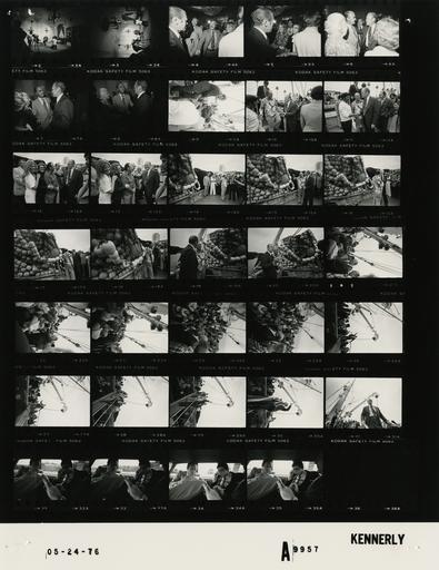 | Keywords: Ford A9957 NLGRF photo contact sheet (1976-05-24)(Gerald Ford Library).jpg White House Photographic Office WHPO is housed at the Gerald R Ford Presidential Library a branch of the National Archives and Records Administration NARA <br/><br/> This file is a 200 dpi photo contact sheet having images from roll of film A9957 of the August 9 1974 - January 20 1977 Gerald R Ford White House Photographic Office Series A0001-A9999 and B0001-B2886 photographs <br/><br/> The date on the photo contact sheet is the date the roll of film was processed not necessarily the date the photographs were taken See table below for additional details 1976-05-24 Gerald R Ford Presidential Library Image http //www fordlibrarymuseum gov/library/whphotos/A9957_NLGRF jpg A9957_NLGRF jpg from http //www fordlibrarymuseum gov/library/whphotos/19760524whpo pdf White House Photographs May 24 1976 of the http //www fordlibrarymuseum gov/Library/whphotos/whpo asp White House Photographic Collection page White House Photographic Office WHPO <br/> Creator David Hume Kennerly PD-USGov Institution Institution Gerald R Ford Presidential Library Table wikitable sortable + Photo contact sheet A9957 U S President Ford Administration Gerald R Ford Library Frame s Tone Subject proper Subject generic Names Geographic Location Photographer Date - 2-3 BW Trip to California-One-on-One Television Interviews GRF and interviewer seated onstage; all may not be shown GRF Ron Fortner KCST-TV ABC; Dick Carlson KFMB-TV CBS; Harold Green KGTV-TV NBC cameramen Robert Mead San Diego CA Little America Westgate Plaza Hotel Kennerly 1976-05-24 - 4-8 BW Trip to California-PFC General Reception mingling GRF PFC Members San Diego CA Little America Westgate Plaza Hotel Kennerly 1976-05-24 - 9-31 BW Trip to California-Visit to Tuna Boat the Theresa Janene GRF greeting handshaking viewing boat talking to boat owner wearing a splashy shirt debarking boat waving GRF Unidentified Men Crowd Secret Service San Diego CA San Diego Harbor Kennerly 1976-05-24 - 32-35 BW Trip to California-Motorcade Vehicle seated in motorcade vehicle O'Donnell name on window O'Donnell talking on phone Cheney O'Donnell San Diego CA Lindberg Field Kennerly 1976-05-24 Gerald R Ford Presidential Library and Museum-cooperation PD-USGov Contact sheets by the Ford White House May 1976 Photographs by David Hume Kennerly from 1976 |