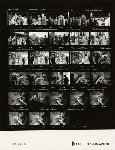 Keywords: Ford B0142 NLGRF photo contact sheet (1976-06-06)(Gerald Ford Library).jpg White House Photographic Office WHPO is housed at the Gerald R Ford Presidential Library a branch of the National Archives and Records Administration NARA <br/><br/> This file is a 200 dpi photo contact sheet having images from roll of film B0142 of the August 9 1974 - January 20 1977 Gerald R Ford White House Photographic Office Series A0001-A9999 and B0001-B2886 photographs <br/><br/> The date on the photo contact sheet is the date the roll of film was processed not necessarily the date the photographs were taken See table below for additional details 1976-06-06 Gerald R Ford Presidential Library Image http //www fordlibrarymuseum gov/library/whphotos/B0142_NLGRF jpg B0142_NLGRF jpg from http //www fordlibrarymuseum gov/library/whphotos/19760606whpo pdf White House Photographs June 6 1976 of the http //www fordlibrarymuseum gov/Library/whphotos/whpo asp White House Photographic Collection page White House Photographic Office WHPO - Schumacher PD-USGov Institution Institution Gerald R Ford Presidential Library Table wikitable sortable + Photo contact sheet B0142 U S President Ford Administration Gerald R Ford Library Frame s Tone Subject proper Subject generic Names Geographic Location Photographer Date - 8A BW First Lady's Trip to California - Dedication Ceremonies for Cedars-Sinai Medical Center BF bending greeting woman; woman seated in wheelchair; others in background Betty Ford Unidentified Woman Others Los Angeles CA Cedars-Sinai Medical Center -Outside Schumacher 1976-06-06 - 9A BW First Lady's Trip to California - Dedication Ceremonies for Cedars-Sinai Medical Center; Vice Chairman of the Board of Directors and Master of Ceremonies standing posing; woman seated in wheelchair Betty Ford Unidentified Woman Bernard Weinberg Others Los Angeles CA Cedars-Sinai Medical Center -Outside Schumacher 1976-06-06 - 10A-11A BW First Lady's Trip to California - Dedication Ceremonies for Cedars-Sinai Medical Center; Vice Chairman of the Board of Directors and Master of Ceremonies standing posing; all not in every frame Betty Ford Bernard Weinberg Others Los Angeles CA Cedars-Sinai Medical Center -Outside Schumacher 1976-06-06 - 12A BW First Lady's Trip to California - Dedication Ceremonies for Cedars-Sinai Medical Center; Vice Chairman of the Board of Directors and Master of Ceremonies walking handshaking Betty Ford Bernard Weinberg Others Los Angeles CA Cedars-Sinai Medical Center -Outside Schumacher 1976-06-06 - 13A-15A BW First Lady's Trip to California - Dedication Ceremonies for Cedars-Sinai Medical Center; Vice Chairman of the Board of Directors and Master of Ceremonies walking talking; BF waving in frames 14A 15A; touring grounds; all not in every frame Betty Ford Bernard Weinberg Others Los Angeles CA Cedars-Sinai Medical Center -Outside Schumacher 1976-06-06 - 16A-17A BW First Lady's Trip to California - Arrival at the Beverly Wilshire Hotel greeting handshaking standing talking Betty Ford Unidentified Man woman Beverly Hills CA Beverly Wilshire Hotel - Outside Schumacher 1976-06-06 - 18A BW First Lady's Trip to California - Gift Presentation Following Arrival at the Beverly Wilshire Hotel standing posing with framed Heritage plaque Betty Ford Unidentified Man woman Beverly Hills CA Beverly Wilshire Hotel - Outside Schumacher 1976-06-06 - 19A-20A BW First Lady's Trip to California - Gift Presentation Following Arrival at the Beverly Wilshire Hotel standing posing with framed Heritage plaque Betty Ford Unidentified Man woman 3 boys Beverly Hills CA Beverly Wilshire Hotel - Outside Schumacher 1976-06-06 - 21A BW First Lady's Trip to California - Gift Presentation Following Arrival at the Beverly Wilshire Hotel standing talking saying goodbye; BF holding framed Heritage plaque Betty Ford Unidentified Man Woman Two boys Beverly Hills CA Beverly Wilshire Hotel - Outside Schumacher 1976-06-06 - 22A-24A BW First Lady's Trip to California - Free Evening at the Beverly Wilshire Hotel talking; BF seated others standing; wrought iron stair railing in background Betty Ford Weidenfeld Unidentified Photographer Beverly Hills CA Beverly Wilshire Hotel - First Lady's Suite Schumacher 1976-06-06 - 25A BW First Lady's Trip to California - Free Evening at the Beverly Wilshire Hotel standing talking; photographer in sillihouette Betty Ford Unidentified Photographer Beverly Hills CA Beverly Wilshire Hotel - First Lady's Suite Schumacher 1976-06-06 - 26A-35A BW First Lady's Trip to California - Free Evening at the Beverly Wilshire Hotel seated talking on sofa; wrought iron stair railing in background; various angles and distances Betty Ford Weidenfeld Beverly Hills CA Beverly Wilshire Hotel - First Lady's Suite Schumacher 1976-06-06 Gerald R Ford Presidential Library and Museum-cooperation PD-USGov Contact sheets by the Ford White House June 1976 |