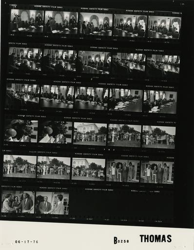 Keywords: Ford B0258 NLGRF photo contact sheet (1976-06-17)(Gerald Ford Library).jpg White House Photographic Office WHPO is housed at the Gerald R Ford Presidential Library a branch of the National Archives and Records Administration NARA <br/><br/> This file is a 200 dpi photo contact sheet having images from roll of film B0258 of the August 9 1974 - January 20 1977 Gerald R Ford White House Photographic Office Series A0001-A9999 and B0001-B2886 photographs <br/><br/> The date on the photo contact sheet is the date the roll of film was processed not necessarily the date the photographs were taken See table below for additional details 1976-06-17 Gerald R Ford Presidential Library Image http //www fordlibrarymuseum gov/library/whphotos/B0258_NLGRF jpg B0258_NLGRF jpg from http //www fordlibrarymuseum gov/library/whphotos/19760617whpo pdf White House Photographs June 17 1976 of the http //www fordlibrarymuseum gov/Library/whphotos/whpo asp White House Photographic Collection page White House Photographic Office WHPO - Thomas PD-USGov Institution Institution Gerald R Ford Presidential Library Table wikitable sortable + Photo contact sheet B0258 U S President Ford Administration Gerald R Ford Library Frame s Tone Subject proper Subject generic Names Geographic Location Photographer Date - 3A-4A B Puerto Rico Economic Summit -Prior to Meeting to Discuss US Position on Issues in Preparation for the International Economic Summit Hyland and Scowcroft standing talking on right of frame Scowcroft's back to camera; Burns seated Usery bending down Dent stranding on right Hyland Scowcroft; Burns Usery Dent Cabinet Room Thomas 1976-06-17 - 5A B Puerto Rico Economic Summit -Prior to Meeting to Discuss US Position on Issues in Preparation for the International Economic Summit Nessen Hyland and Scowcroft standing talking on right of frame Scowcroft's back to camera Hyland smoking cigarette; Burns seated Usery bending down Dent stranding on right Nessen Hyland Scowcroft; Burns Usery Dent Cabinet Room Thomas 1976-06-17 - 6A-7A B Puerto Rico Economic Summit -Prior to Meeting to Discuss US Position on Issues in Preparation for the International Economic Summit standing along side of table; talking in small groups; Kissinger talking to Simon Seidman Porter Sonnenfeldt Richard Darman Kissinger Simon Edwin Yeo Burton Malkiel Cabinet Room Thomas 1976-06-17 - 8A-9A B Puerto Rico Economic Summit -Prior to Meeting to Discuss US Position on Issues in Preparation for the International Economic Summit Burns seated in foreground Dent leaning on back of chair backs to camera; Burns talking to across table to Simon and Kissinger; others standing along side of table; talking in small groups Seidman Porter Sonnenfeldt Richard Darman Kissinger Simon Edwin Yeo Burton Malkiel; Dent Burns Cabinet Room Thomas 1976-06-17 - 10A B Puerto Rico Economic Summit -Prior to Meeting to Discuss US Position on Issues in Preparation for the International Economic Summit Burns standing in foreground; GRF and others standing on opposite side of table GRF Seidman Porter Sonnenfeldt Richard Darman Kissinger Simon Greenspan Edwin Yeo Burton Malkiel Burns Cabinet Room Thomas 1976-06-17 - 11A-13A B Puerto Rico Economic Summit -Meeting to Discuss US Position on Issues in Preparation for the International Economic Summit seated around table; Burns Oneill Usery Dent Scowcroft on opposite side from others GRF Seidman Porter Sonnenfeldt Richard Darman Kissinger Simon Greenspan Edwin Yeo Burton Malkiel Burns Oneill Usery Dent Scowcroft Cabinet Room Thomas 1976-06-17 - 14A-15A B Puerto Rico Economic Summit -Meeting to Discuss US Position on Issues in Preparation for the International Economic Summit GRF Kissinger Simon and Seidman seated at table talking; others in background; medium range GRF Sonnenfeldt Porter Richard Darman Seidman Kissinger Simon Cabinet Room Thomas 1976-06-17 - 16A-17A B Puerto Rico Economic Summit -Meeting to Discuss US Position on Issues in Preparation for the International Economic Summit GRF Kissinger Simon Greenspan and Seidman seated at table talking; others in background; medium range GRF Seidman Kissinger Sonnenfeldt Greenspan Richard Darman Simon Edwin Yeo Burton Malkiel Nessen Raoul-Duval Cabinet Room Thomas 1976-06-17 - 18A-19A B Puerto Rico Economic Summit -Meeting to Discuss US Position on Issues in Preparation for the International Economic Summit GRF Kissinger Simon Greenspan and Seidman seated at table talking; others in background; Seidman and Kissinger's back to camera; medium range GRF Seidman Kissinger Kissinger Simon Greenspan Edwin Yeo Nessen Raoul-Duval Cabinet Room Thomas 1976-06-17 - 20A-25A B Meeting with Teenage Republicans TARS Attending the 8th Annual Teenage Republican Leadership Conference; Director for Youth Affairs standing posing; White House in background; all not in every frame GRF Pamela Powell Teenage Republicans TARS Rose Garden Thomas 1976-06-17 - 26A-27A B Meeting with Teenage Republicans TARS Attending the 8th Annual Teenage Republican Leadership Conference standing posing GRF Two Unidentified Young Men Unidentified Young Woman; Teenage Republicans TARS Colonnade Thomas 1976-06-17 - 28A B Meeting with Teenage Republicans TARS Attending the 8th Annual Teenage Republican Leadership Conference standing talking handshaking GRF Unidentified Young Man Unidentified Young Woman; Teenage Republicans TARS Colonnade Thomas 1976-06-17 - 29A B Meeting with Teenage Republicans TARS Attending the 8th Annual Teenage Republican Leadership Conference standing talking handshaking GRF Unidentified Young Man; Teenage Republicans TARS Colonnade Thomas 1976-06-17 Gerald R Ford Presidential Library and Museum-cooperation PD-USGov Contact sheets by the Ford White House June 1976 |