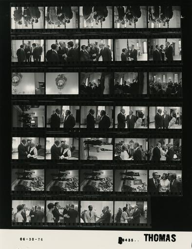| Keywords: Ford B0435 NLGRF photo contact sheet (1976-06-30)(Gerald Ford Library).jpg White House Photographic Office WHPO is housed at the Gerald R Ford Presidential Library a branch of the National Archives and Records Administration NARA <br/><br/> This file is a 200 dpi photo contact sheet having images from roll of film B0435 of the August 9 1974 - January 20 1977 Gerald R Ford White House Photographic Office Series A0001-A9999 and B0001-B2886 photographs <br/><br/> The date on the photo contact sheet is the date the roll of film was processed not necessarily the date the photographs were taken See table below for additional details 1976-06-30 Gerald R Ford Presidential Library Image http //www fordlibrarymuseum gov/library/whphotos/B0435_NLGRF jpg B0435_NLGRF jpg from http //www fordlibrarymuseum gov/library/whphotos/19760630whpo pdf White House Photographs June 30 1976 of the http //www fordlibrarymuseum gov/Library/whphotos/whpo asp White House Photographic Collection page White House Photographic Office WHPO - Thomas PD-USGov Institution Institution Gerald R Ford Presidential Library Table wikitable sortable + Photo contact sheet B0435 U S President Ford Administration Gerald R Ford Library Frame s Tone Subject proper Subject generic Names Geographic Location Photographer Date - 4A BW Receiving Line Prior to Luncheon in Honor of the Prime Minister of Japan -Former Counsellor to the President greeting handshaking standing talking GRF Mr Mrs Paul McCracken East Room Thomas 1976-06-30 - 5A-7A BW Receiving Line Prior to Luncheon in Honor of the Prime Minister of Japan greeting handshaking standing talking; all not in every frame GRF Takeo Miki Unidentified Couples East Room Thomas 1976-06-30 - 8A-10A BW Receiving Line Prior to Luncheon in Honor of the Prime Minister of Japan greeting handshaking standing talking GRF Takeo Miki Unidentified Youth East Room Thomas 1976-06-30 - 11A BW Receiving Line Prior to Luncheon in Honor of the Prime Minister of Japan greeting handshaking standing talking GRF Takeo Miki Unidentified Man East Room Thomas 1976-06-30 - 12A-13A BW Receiving Line Prior to Luncheon in Honor of the Prime Minister of Japan; Interpreter Yanazaki standing talking GRF Takeo Miki Ryichiro Yanazaki East Room Thomas 1976-06-30 - 14A-15A BW Luncheon in Honor of the Prime Minister of Japan mirrored wall sconce State Dining Room Thomas 1976-06-30 - 16A-17A BW Luncheon in Honor of the Prime Minister of Japan standing raising glasses for toast; all not in frames GRF Takeo Miki Guests State Dining Room Thomas 1976-06-30 - 18A BW Luncheon in Honor of the Prime Minister of Japan; Interpreter Yanazaki Miki standing making remarks; all guests not in frames GRF Takeo Miki; Head Table Guests Ryichiro Yanazaki; guests State Dining Room Thomas 1976-06-30 - 19A BW Following Luncheon in Honor of the Prime Minister of Japan; Interpreter Yanazaki walking fron State Dining Room talking GRF Takeo Miki Ryichiro Yanazaki Cross Hall Thomas 1976-06-30 - 20A-21A BW Small Talk Following Luncheon in Honor of the Prime Minister of Japan standing talking smiling GRF Unidentified Man Entrance Hall/Grand Hall Thomas 1976-06-30 - 22A-23A BW Small Talk Following Luncheon in Honor of the Prime Minister of Japan standing talking smiling GRF Unidentified Man Woman Entrance Hall/Grand Hall Thomas 1976-06-30 - 24A-25A BW Small Talk Following Luncheon in Honor of the Prime Minister of Japan standing talking smiling GRF Unidentified Man Woman Entrance Hall/Grand Hall Thomas 1976-06-30 - 26A BW Following Luncheon in Honor of the Prime Minister of Japan standing posing in doorway Maria Downs Unidentified Man East Room Thomas 1976-06-30 - 27A-28A BW Small Talk Following Luncheon in Honor of the Prime Minister of Japan standing talking smiling GRF Unidentified Man Woman Entrance Hall/Grand Hall Thomas 1976-06-30 - 29A-32A BW Small Talk Following Luncheon in Honor of the Prime Minister of Japan HAK and NAR standing talking under Mamie Eisenhower portrait; others in background Kissinger Rockefeller; Others Cross Hall Thomas 1976-06-30 - 33A BW Small Talk Following Luncheon in Honor of the Prime Minister of Japan standing talking Rockefeller Unidentified Man Woman Cross Hall Thomas 1976-06-30 - 34A-35A BW Small Talk Following Luncheon in Honor of the Prime Minister of Japan standing talking GRF Rockefeller Unidentified Man Woman Cross Hall Thomas 1976-06-30 - 36A BW Small Talk Following Luncheon in Honor of the Prime Minister of Japan - Chicago Cubs Coach and Future Hall of Fame Baseball Player standing talking smiling laughing GRF Ernie Banks Cross Hall Thomas 1976-06-30 - 37 BW Small Talk Following Luncheon in Honor of the Prime Minister of Japan standing talking smiling GRF Unidentified Man Woman Cross Hall Thomas 1976-06-30 Gerald R Ford Presidential Library and Museum-cooperation PD-USGov Contact sheets by the Ford White House June 1976 |