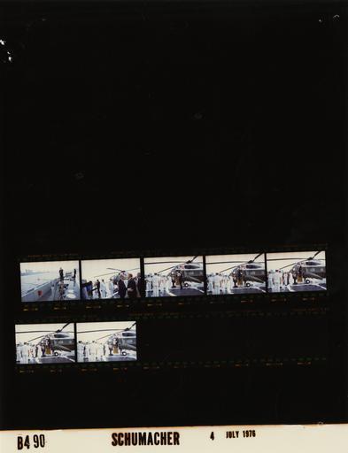 | Keywords: Ford B0490 NLGRF photo contact sheet (1976-07-04)(Gerald Ford Library).jpg White House Photographic Office WHPO is housed at the Gerald R Ford Presidential Library a branch of the National Archives and Records Administration NARA <br/><br/> This file is a 200 dpi photo contact sheet having images from roll of film B0490 of the August 9 1974 - January 20 1977 Gerald R Ford White House Photographic Office Series A0001-A9999 and B0001-B2886 photographs <br/><br/> The date on the photo contact sheet is the date the roll of film was processed not necessarily the date the photographs were taken See table below for additional details 1976-07-04 Gerald R Ford Presidential Library Image http //www fordlibrarymuseum gov/library/whphotos/B0490_NLGRF jpg B0490_NLGRF jpg from http //www fordlibrarymuseum gov/library/whphotos/19760704whpo pdf White House Photographs July 4 1976 of the http //www fordlibrarymuseum gov/Library/whphotos/whpo asp White House Photographic Collection page White House Photographic Office WHPO - Schumacher PD-USGov Institution Institution Gerald R Ford Presidential Library Table wikitable sortable + Photo contact sheet B0490 U S President Ford Administration Gerald R Ford Library Frame s Tone Subject proper Subject generic Names Geographic Location Photographer Date - 4 Color 4th of July Bicentennial Event - Flight Deck of the USS Nashville LPD-13 -Operation Sail standing watching ships not seen sail by; arms folded GRF New York Harbor New York City NY USS Nashville LPD-13 - Flight Deck Schumacher 1976-07-04 - 5 Color 4th of July Bicentennial Event - Flight Deck of the USS Nashville LPD-13 -Following Operation Sail - Prior to Departure for Newark International Airport handshaking saying goodbye; Marine One Helicopter in background GRF Naval Personnel Others New York Harbor New York City NY USS Nashville LPD-13 - Flight Deck Schumacher 1976-07-04 - 6-10 Color 4th of July Bicentennial Event - Flight Deck of the USS Nashville LPD-13 -Following Operation Sail - Prior to Departure for Newark International Airport GRF and BF in door of Marine One Helicopter waving goodbye; BF not in every frame; last frame out of focus GRF Betty Ford Naval Personnel Others New York Harbor New York City NY USS Nashville LPD-13 - Flight Deck Schumacher 1976-07-04 Gerald R Ford Presidential Library and Museum-cooperation PD-USGov Contact sheets by the Ford White House July 1976 |