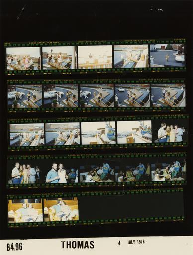 | Keywords: Ford B0496 NLGRF photo contact sheet (1976-07-05)(Gerald Ford Library).jpg White House Photographic Office WHPO is housed at the Gerald R Ford Presidential Library a branch of the National Archives and Records Administration NARA <br/><br/> This file is a 200 dpi photo contact sheet having images from roll of film B0496 of the August 9 1974 - January 20 1977 Gerald R Ford White House Photographic Office Series A0001-A9999 and B0001-B2886 photographs <br/><br/> The date on the photo contact sheet is the date the roll of film was processed not necessarily the date the photographs were taken See table below for additional details 1976-07-05 Gerald R Ford Presidential Library Image http //www fordlibrarymuseum gov/library/whphotos/B0496_NLGRF jpg B0496_NLGRF jpg from http //www fordlibrarymuseum gov/library/whphotos/19760705whpo pdf White House Photographs July 5 1976 of the http //www fordlibrarymuseum gov/Library/whphotos/whpo asp White House Photographic Collection page White House Photographic Office WHPO - Thomas PD-USGov Institution Institution Gerald R Ford Presidential Library Table wikitable sortable + Photo contact sheet B0496 U S President Ford Administration Gerald R Ford Library Frame s Tone Subject proper Subject generic Names Geographic Location Photographer Date - 3-14 Color Susan Ford's 19th Birthday Celebration - Prior to Cruise Aboard the Presidential Yacht Sequoia exiting vehicles and boarding USS Sequoia; taken from aboard yacht; all not in every frame Unidentified Men Women Washington DC Navy Yard - Aboard USS Sequoia Thomas 1976-07-05 - 15-16 Color Susan Ford's 19th Birthday Celebration - Prior to Cruise Aboard the Presidential Yacht Sequoia seated talking smiling laughing; Susan wearing head scarf Susan Ford Unidentified Man Women Washington DC Navy Yard - Aboard USS Sequoia Thomas 1976-07-05 - 17-22 Color Susan Ford's 19th Birthday Celebration - Cruise Aboard the Presidential Yacht Sequoia sitting standing talking laughing posing eating drinking; various angles and distances; all not in every frame Unidentified Men Women Potomac River Washington DC USS Sequoia Thomas 1976-07-05 - 23-24 Color Susan Ford's 19th Birthday Celebration - Cruise Aboard the Presidential Yacht Sequoia seated kissing for camera Unidentified Man Woman Potomac River Washington DC USS Sequoia Thomas 1976-07-05 Gerald R Ford Presidential Library and Museum-cooperation PD-USGov Contact sheets by the Ford White House July 1976 |