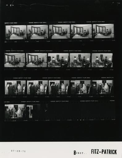 | Keywords: Ford B0607 NLGRF photo contact sheet (1976-07-06)(Gerald Ford Library).jpg White House Photographic Office WHPO is housed at the Gerald R Ford Presidential Library a branch of the National Archives and Records Administration NARA <br/><br/> This file is a 200 dpi photo contact sheet having images from roll of film B0607 of the August 9 1974 - January 20 1977 Gerald R Ford White House Photographic Office Series A0001-A9999 and B0001-B2886 photographs <br/><br/> The date on the photo contact sheet is the date the roll of film was processed not necessarily the date the photographs were taken See table below for additional details 1976-07-06 Gerald R Ford Presidential Library Image http //www fordlibrarymuseum gov/library/whphotos/B0607_NLGRF jpg B0607_NLGRF jpg from http //www fordlibrarymuseum gov/library/whphotos/19760706whpo pdf White House Photographs July 6 1976 of the http //www fordlibrarymuseum gov/Library/whphotos/whpo asp White House Photographic Collection page White House Photographic Office WHPO - Fitz-Patrick PD-USGov Institution Institution Gerald R Ford Presidential Library Table wikitable sortable + Photo contact sheet B0607 U S President Ford Administration Gerald R Ford Library Frame s Tone Subject proper Subject generic Names Geographic Location Photographer Date - 3-9 BW Meeting with Speech Writing Team and Director of the Research Office seated around desk; only GRF facing camera; long shots from across room; all not in every frame; woman walking around room taking photographs GRF Marsh Cheney Hartmann Orben Douglas Smith McCall Craig Smith; Unidentified Woman Oval Office Fitz-Patrick 1976-07-06 - 10-12 BW Meeting with Second Deputy Prime Minister and Commander of the National Guard of Saudi Arabia; Deputy Commander of National Guard Ambassador from Saudi Arabia to US; State Department Interpreter GRF and Prince seated at fireplace; Najjar standing between them interpreting; others seated on sofas GRF Prince Abdallah Ibn Abd Al-Aziz Al-Saud Abdual Azia Al Tuwayjiri Ali Abdallah Alireza Kissinger Scowcroft Rumsfeld; Najib Najjar Oval Office Fitz-Patrick 1976-07-09 - 13-18 BW Gift Exchange with Second Deputy Prime Minister and Commander of the National Guard of Saudi Arabia; Deputy Commander of National Guard Ambassador from Saudi Arabia to US; State Department Interpreter standing talking looking at gifts; all not in every frame GRF Prince Abdallah Ibn Abd Al-Aziz Al-Saud Abdual Azia Al Tuwayjiri Ali Abdallah Alireza Kissinger; Najib Najjar Cabinet Room Fitz-Patrick 1976-07-09 - 19 BW Following Gift Exchange with Second Deputy Prime Minister and Commander of the National Guard of Saudi Arabia; standing talking; too dark to make out features; ID made from roll B0606 GRF Rumsfeld Unidentified Army Brigadier General Cabinet Room - Outside Fitz-Patrick 1976-07-09 Gerald R Ford Presidential Library and Museum-cooperation PD-USGov Contact sheets by the Ford White House July 1976 Brigadier generals |