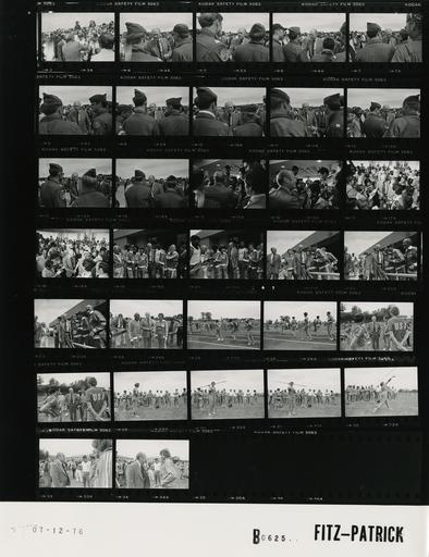 | Keywords: Ford B0625 NLGRF photo contact sheet (1976-07-10)(Gerald Ford Library).jpg White House Photographic Office WHPO is housed at the Gerald R Ford Presidential Library a branch of the National Archives and Records Administration NARA <br/><br/> This file is a 200 dpi photo contact sheet having images from roll of film B0625 of the August 9 1974 - January 20 1977 Gerald R Ford White House Photographic Office Series A0001-A9999 and B0001-B2886 photographs <br/><br/> The date on the photo contact sheet is the date the roll of film was processed not necessarily the date the photographs were taken See table below for additional details 1976-07-10 Gerald R Ford Presidential Library Image http //www fordlibrarymuseum gov/library/whphotos/B0625_NLGRF jpg B0625_NLGRF jpg from http //www fordlibrarymuseum gov/library/whphotos/19760710whpo pdf White House Photographs July 10 1976 of the http //www fordlibrarymuseum gov/Library/whphotos/whpo asp White House Photographic Collection page White House Photographic Office WHPO - Fitz-Patrick PD-USGov Institution Institution Gerald R Ford Presidential Library Table wikitable sortable + Photo contact sheet B0625 U S President Ford Administration Gerald R Ford Library Frame s Tone Subject proper Subject generic Names Geographic Location Photographer Date - 3A BW Trip to Plattsburgh New York for Farewell Ceremony for US Olympic Team Departing for Montreal Canada greeting handshaking; all not in frame GRF Crowd Plattsburgh NY Plattsburgh Air Force Base -Tarmac Fitz-Patrick 1976-07-10 - 4A-14A BW Trip to Plattsburgh New York for Farewell Ceremony for US Olympic Team Departing for Montreal Canada greeting handshaking; military all have backs to camera; all not in frame GRF Military Personnel Plattsburgh NY Plattsburgh Air Force Base -Tarmac Fitz-Patrick 1976-07-10 - 15A BW Trip to Plattsburgh New York for Farewell Ceremony for US Olympic Team Departing for Montreal Canada greeting talking handshaking posing; all not in frame GRF Olympic Athletes Plattsburgh NY New York State University College - Clinton Dining Hall Fitz-Patrick 1976-07-10 - 16A-18A BW Trip to Plattsburgh New York for Farewell Ceremony for US Olympic Team Departing for Montreal Canada standing talking; GRF lit by TV lights; all not in frames GRF Media Plattsburgh NY New York State University College - Clinton Dining Hall Fitz-Patrick 1976-07-10 - 19A-23A BW Trip to Plattsburgh New York for Farewell Ceremony for US Olympic Team Departing for Montreal Canada greeting talking posing; all not in every frame GRF Olympic Athletes Plattsburgh NY New York State University College - Campus Fitz-Patrick 1976-07-10 - 24A BW Trip to Plattsburgh New York for Farewell Ceremony for US Olympic Team Departing for Montreal Canada; Men's amd Women's Track and Field Managers standing posing smiling; media in background GRF Evie Dennis William Exum; Media Plattsburgh NY New York State University College - Track and Field Area Fitz-Patrick 1976-07-10 - 25A-26A BW Trip to Plattsburgh New York for Farewell Ceremony for US Olympic Team Departing for Montreal Canada; Watching Practice GRF watching athletes practice; all not in every frame GRF Olympic Athletes Plattsburgh NY New York State University College - Track and Field Area Fitz-Patrick 1976-07-10 - 27A-28A BW Trip to Plattsburgh New York for Farewell Ceremony for US Olympic Team Departing for Montreal Canada standing talking; all not in every frame GRF Olympic Athletes Plattsburgh NY New York State University College - Track and Field Area Fitz-Patrick 1976-07-10 - 29A-32A BW Trip to Plattsburgh New York for Farewell Ceremony for US Olympic Team Departing for Montreal Canada; Watching Practice GRF watching women throw the javelin; all not in every frame GRF female Javelin Olympians Plattsburgh NY New York State University College - Track and Field Area Fitz-Patrick 1976-07-10 - 33A-34A BW Trip to Plattsburgh New York for Farewell Ceremony for US Olympic Team Departing for Montreal Canada standing talking; all not in every frame GRF Olympic Athletes Plattsburgh NY New York State University College - Track and Field Area Fitz-Patrick 1976-07-10 Gerald R Ford Presidential Library and Museum-cooperation PD-USGov Contact sheets by the Ford White House July 1976 |