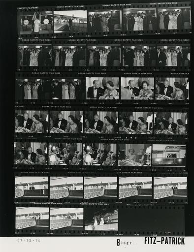 | Keywords: Ford B0627 NLGRF photo contact sheet (1976-07-10)(Gerald Ford Library).jpg  White House Photographic Office WHPO is housed at the Gerald R Ford Presidential Library a branch of the National Archives and Records Administration NARA <br/><br/> This file is a 200 dpi photo contact sheet having images from roll of film B0627 of the August 9 1974 - January 20 1977 Gerald R Ford White House Photographic Office Series A0001-A9999 and B0001-B2886 photographs <br/><br/> The date on the photo contact sheet is the date the roll of film was processed not necessarily the date the photographs were taken See table below for additional details 1976-07-10 Gerald R Ford Presidential Library Image http //www fordlibrarymuseum gov/library/whphotos/B0627_NLGRF jpg B0627_NLGRF jpg from http //www fordlibrarymuseum gov/library/whphotos/19760710whpo pdf White House Photographs July 10 1976 of the http //www fordlibrarymuseum gov/Library/whphotos/whpo asp White House Photographic Collection page White House Photographic Office WHPO - Fitz-Patrick PD-USGov Institution Institution Gerald R Ford Presidential Library Table wikitable sortable + Photo contact sheet B0627 U S President Ford Administration Gerald R Ford Library Frame s Tone Subject proper Subject generic Names Geographic Location Photographer Date - 3 BW Arrival for Dinner Hosted by Queen Elizabeth II and The Prince Philip Duke of Edinburgh aboard Her Majesty's Yacht Britannia -Newport Rhode Island approaching gangway backs to camera; yacht in background; formal GRF Betty Ford Susan Ford Newport RI Pier 1 Gangway HMY Britannia Fitz-Patrick 1976-07-10 - 4 BW Arrival for Dinner Hosted by Queen Elizabeth II and The Prince Philip Duke of Edinburgh aboard Her Majesty's Yacht Britannia; Flag Officer Royal Yachts - Newport Rhode Island GRF BF and Susan being piped aboard backs to camera; Philip obscured by Fords; crew saluting; formal wear GRF Betty Ford Susan Ford Prince Philip Rear Adm Hugh Janion; Crew Newport RI Pier 1 HMY Britannia Fitz-Patrick 1976-07-10 - 5-7 BW Receiving Line Prior to Dinner Hosted by Queen Elizabeth II and The Prince Philip Duke of Edinburgh aboard Her Majesty's Yacht Britannia - Newport Rhode Island greeting handshaking standing talking; Susan not in 1st frame; formal wear GRF Queen Elizabeth II Susan Ford Henry Catto; Others Newport RI HMY Britannia - Dining Room Fitz-Patrick 1976-07-10 - 8-10 BW Receiving Line Prior to Dinner Hosted by Queen Elizabeth II and The Prince Philip Duke of Edinburgh aboard Her Majesty's Yacht Britannia - Newport Rhode Island GRF and Queen standing talking; Catto and others in background; formal wear GRF Queen Elizabeth II Henry Catto; Others Newport RI HMY Britannia -Dining Room Fitz-Patrick 1976-07-10 - 11-14 BW Receiving Line Prior to Dinner Hosted by Queen Elizabeth II and The Prince Philip Duke of Edinburgh aboard Her Majesty's Yacht Britannia - Newport Rhode Island GRF Queen BF and Susan standing talking; others in background; formal wear GRF Queen Elizabeth II Betty Ford Susan Ford; Others Newport RI HMY Britannia - Dining Room Fitz-Patrick 1976-07-10 - 15-23 BW Dinner Hosted by Queen Elizabeth II and The Prince Philip Duke of Edinburgh aboard Her Majesty's Yacht Britannia - Newport Rhode Island seated at table talking smiling; various angles; formal wear GRF Queen Elizabeth II Newport RI HMY Britannia -Dining Room Fitz-Patrick 1976-07-10 - 24-25 BW Dinner Hosted by Queen Elizabeth II and The Prince Philip Duke of Edinburgh aboard Her Majesty's Yacht Britannia - Newport Rhode Island BF and Philip seated talking at center of table; Rockefeller in foreground; others in background; formal wear Betty Ford Prince Philip; Happy Rockefeller Others Newport RI HMY Britannia - Dining Room Fitz-Patrick 1976-07-10 - 26 BW Dinner Hosted by Queen Elizabeth II and The Prince Philip Duke of Edinburgh aboard Her Majesty's Yacht Britannia - Newport Rhode Island seated at table; formal wear Betty Ford Prince Philip Newport RI HMY Britannia - Dining Room Fitz-Patrick 1976-07-10 - 27-28 BW Prior to Departure from Dinner Hosted by Queen Elizabeth II and The Prince Philip Duke of Edinburgh aboard Her Majesty's Yacht Britannia - Newport Rhode Island GRF and Philip standing talking; crew piping at left of frame; formal wear; taken from pier GRF Prince Philip; Crew Newport RI Pier 1 Deck near Gangway HMY Britannia Fitz-Patrick 1976-07-10 - 29-34 BW Departure from Dinner Hosted by Queen Elizabeth II and The Prince Philip Duke of Edinburgh aboard Her Majesty's Yacht Britannia; Flag Officer Royal Yachts -Newport Rhode Island GRF BF and Susan being piped off the yacht walking toward gangway; Philip obscured by railing in some frames; crew piping; formal wear; taken from pier GRF Betty Ford Susan Ford Prince Philip Rear Adm Hugh Janion; Crew Newport RI Pier 1 HMY Britannia Fitz-Patrick 1976-07-10 - 35 BW Departure from Dinner Hosted by Queen Elizabeth II and The Prince Philip Duke of Edinburgh aboard Her Majesty's Yacht Britannia; Flag Officer Royal Yachts -Newport Rhode Island No photographs were taken on this day walking down gangway; yacht in background; formal wear; taken from pier GRF Betty Ford Susan Ford Newport RI Pier 1 HMY Britannia Fitz-Patrick 1976-07-10 Gerald R Ford Presidential Library and Museum-cooperation PD-USGov Contact sheets by the Ford White House July 1976 |