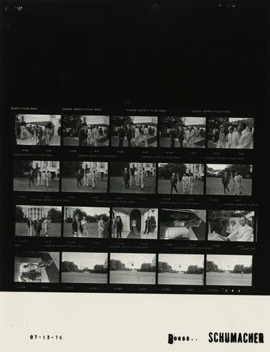 | Keywords: Ford B0655 NLGRF photo contact sheet (1976-07-13)(Gerald Ford Library).jpg White House Photographic Office WHPO is housed at the Gerald R Ford Presidential Library a branch of the National Archives and Records Administration NARA <br/><br/> This file is a 200 dpi photo contact sheet having images from roll of film B0655 of the August 9 1974 - January 20 1977 Gerald R Ford White House Photographic Office Series A0001-A9999 and B0001-B2886 photographs <br/><br/> The date on the photo contact sheet is the date the roll of film was processed not necessarily the date the photographs were taken See table below for additional details 1976-07-13 Gerald R Ford Presidential Library Image http //www fordlibrarymuseum gov/library/whphotos/B0655_NLGRF jpg B0655_NLGRF jpg from http //www fordlibrarymuseum gov/library/whphotos/19760713whpo pdf White House Photographs July 13 1976 of the http //www fordlibrarymuseum gov/Library/whphotos/whpo asp White House Photographic Collection page White House Photographic Office WHPO - Schumacher PD-USGov Institution Institution Gerald R Ford Presidential Library Table wikitable sortable + Photo contact sheet B0655 U S President Ford Administration Gerald R Ford Library Frame s Tone Subject proper Subject generic Names Geographic Location Photographer Date - 2 BW Prior to Departure for Andrews Air Force Base and Trip to Philadelphia Pennsylvania; Former Major League Baseball Player walking under canopy talking GRF Jack Ford Ernie Banks South Portico Schumacher 1976-07-13 - 3-5 BW Prior to Departure for Andrews Air Force Base and Trip to Philadelphia Pennsylvania; Former Major League Baseball Players standing talking greeting handshaking GRF Joe Garagiola Ernie Banks Cannon South Portico Schumacher 1976-07-13 - 6 BW Prior to Departure for Andrews Air Force Base and Trip to Philadelphia Pennsylvania; Former Major League Baseball Players standing talking; close up Jack Ford Joe Garagiola Ernie Banks South Portico Schumacher 1976-07-13 - 7-13 BW Prior to Departure for Andrews Air Force Base and Trip to Philadelphia Pennsylvania; Former Major League Baseball Players walking across lawn talking; moving toward camera and Helicopter not seen ; White House in background GRF Jack Ford Joe Garagiola Ernie Banks South Lawn Schumacher 1976-07-13 - 14-15 BW Watching Departure for Andrews Air Force Base and Trip to Philadelphia Pennsylvania -Pet Golden Retriever standing in doorway under canopy; dog seated Susan Ford Liberty or Misty South Portico Schumacher 1976-07-13 - 16 BW Watching Departure for Andrews Air Force Base and Trip to Philadelphia Pennsylvania man has earphone Unidentified Man Woman Secret Service South Portico Schumacher 1976-07-13 - 17 BW Watching Departure for Andrews Air Force Base and Trip to Philadelphia Pennsylvania -Pet Golden Retriever standing in doorway under canopy; dog seated Susan Ford Liberty or Misty South Portico Schumacher 1976-07-13 - 18-21 BW Departure for Andrews Air Force Base and Trip to Philadelphia Pennsylvania; Pet Golden Retriever Marine One rising; copter flying away from camera; Susan and dog walking onto grass neither in 1st frame dog in 3 Susan in last two frames; Washington Monument in background Susan Ford Liberty or Misty South Lawn Schumacher 1976-07-13 Gerald R Ford Presidential Library and Museum-cooperation PD-USGov Contact sheets by the Ford White House July 1976 |