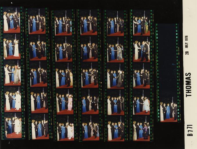 Keywords: Ford B0771 NLGRF photo contact sheet (1976-07-20)(Gerald Ford Library).jpg White House Photographic Office WHPO is housed at the Gerald R Ford Presidential Library a branch of the National Archives and Records Administration NARA <br/><br/> This file is a 200 dpi photo contact sheet having images from roll of film B0771 of the August 9 1974 - January 20 1977 Gerald R Ford White House Photographic Office Series A0001-A9999 and B0001-B2886 photographs <br/><br/> The date on the photo contact sheet is the date the roll of film was processed not necessarily the date the photographs were taken See table below for additional details 1976-07-20 Gerald R Ford Presidential Library Image http //www fordlibrarymuseum gov/library/whphotos/B0771_NLGRF jpg B0771_NLGRF jpg from http //www fordlibrarymuseum gov/library/whphotos/19760720whpo pdf White House Photographs July 20 1976 of the http //www fordlibrarymuseum gov/Library/whphotos/whpo asp White House Photographic Collection page White House Photographic Office WHPO - Thomas PD-USGov Institution Institution Gerald R Ford Presidential Library Table wikitable sortable + Photo contact sheet B0771 U S President Ford Administration Gerald R Ford Library Frame s Tone Subject proper Subject generic Names Geographic Location Photographer Date - 4-34 Color Receiving Line for Concert and Reception for Members of the Diplomatic Corps to Celebrate the American Revolution Bicentennial greeting handshaking standing talking; various angles and distances; all not in every frame; white tie formal wear GRF Betty Ford Henry Nancy Kissinger; Guests South Lawn Thomas 1976-07-20 Gerald R Ford Presidential Library and Museum-cooperation PD-USGov Contact sheets by the Ford White House July 1976