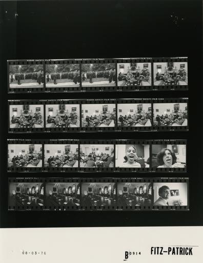 | Keywords: Ford B0914 NLGRF photo contact sheet (1976-07-22)(Gerald Ford Library).jpg White House Photographic Office WHPO is housed at the Gerald R Ford Presidential Library a branch of the National Archives and Records Administration NARA <br/><br/> This file is a 200 dpi photo contact sheet having images from roll of film B0914 of the August 9 1974 - January 20 1977 Gerald R Ford White House Photographic Office Series A0001-A9999 and B0001-B2886 photographs <br/><br/> The date on the photo contact sheet is the date the roll of film was processed not necessarily the date the photographs were taken See table below for additional details 1976-07-22 Gerald R Ford Presidential Library Image http //www fordlibrarymuseum gov/library/whphotos/B0914_NLGRF jpg B0914_NLGRF jpg from http //www fordlibrarymuseum gov/library/whphotos/19760722whpo pdf White House Photographs July 22 1976 of the http //www fordlibrarymuseum gov/Library/whphotos/whpo asp White House Photographic Collection page White House Photographic Office WHPO - Fitz-Patrick PD-USGov Institution Institution Gerald R Ford Presidential Library Table wikitable sortable + Photo contact sheet B0914 U S President Ford Administration Gerald R Ford Library Frame s Tone Subject proper Subject generic Names Geographic Location Photographer Date - 5-7 BW Meeting with Participants in the 1976 State President's Conference of the Future Farmers of America FFA youths standing in arch; GRF speaking back to camera GRF Future Farmers Lawn Outside Oval Office Fitz-Patrick 1976-07-22 - 8-17 BW Interview with Reader's Digest Editor-in-Chief Managing Editor Washington Editor and Assistant Managing Editor seated near fireplace; various angles and distances; all not in every frame GRF Edward Thompson Kenneth Gilmore William Shulz Jeremmy Dole John Carlson Oval Office Fitz-Patrick 1976-07-22 - 18-19 BW sticking out tongues Unidentified Girl Kathy Tindle White House Photo Office Fitz-Patrick 1976-07-22 - 20-23 BW Meeting to Discuss Federal Immunization Program Against Swine Influenza seated around table; all not in frames GRF Mathews Theodore Cooper William Taft Stanford Winston William Rhatican Cavanaugh O'Neill Marsh Cabinet Room Fitz-Patrick 1976-07-22 - 24 BW close up Unidentified Man White House Photo Office Fitz-Patrick 1976-07-22 Gerald R Ford Presidential Library and Museum-cooperation PD-USGov Contact sheets by the Ford White House July 1976 National FFA Organization |