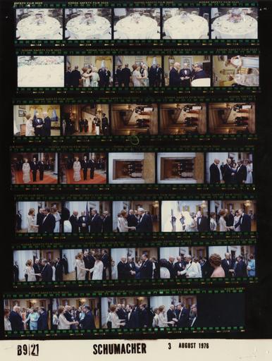Keywords: Ford B0921 NLGRF photo contact sheet (1976-08-03)(Gerald Ford Library).jpg White House Photographic Office WHPO is housed at the Gerald R Ford Presidential Library a branch of the National Archives and Records Administration NARA <br/><br/> This file is a 200 dpi photo contact sheet having images from roll of film B0921 of the August 9 1974 - January 20 1977 Gerald R Ford White House Photographic Office Series A0001-A9999 and B0001-B2886 photographs <br/><br/> The date on the photo contact sheet is the date the roll of film was processed not necessarily the date the photographs were taken See table below for additional details 1976-08-03 Gerald R Ford Presidential Library Image http //www fordlibrarymuseum gov/library/whphotos/B0921_NLGRF jpg B0921_NLGRF jpg from http //www fordlibrarymuseum gov/library/whphotos/19760803whpo pdf White House Photographs August 3 1976 of the http //www fordlibrarymuseum gov/Library/whphotos/whpo asp White House Photographic Collection page White House Photographic Office WHPO - Schumacher PD-USGov Institution Institution Gerald R Ford Presidential Library Table wikitable sortable + Photo contact sheet B0921 U S President Ford Administration Gerald R Ford Library Frame s Tone Subject proper Subject generic Names Geographic Location Photographer Date - 1A-6A Color Place Settings for State Dinner for the President of the Republic of Finland Tables; centerpieces silverware Tent/South Lawn Schumacher 1976-08-03 - 7A-10A Color Reception Prior to State Dinner for the President of the Republic of Finland standing talking; various angles and distances; all not in every frame; formal wear GRF Betty Ford Kekkonen Sec Mrs Kissinger Susan Ford Others Second Floor - Yellow Oval Room Schumacher 1976-08-03 - 11A Color Reception Prior to State Dinner for the President of the Republic of Finland standing talking; formal wear; close up GRF Betty Ford Kekkonen Second Floor - Yellow Oval Room Schumacher 1976-08-03 - 12A-15A Color Prior to State Dinner for the President of the Republic of Finland standing posing at base of steps; Guard not in every frame; formal wear GRF Betty Ford Kekkonen; Honor Guard Entrance Hall/Grand Hall Schumacher 1976-08-03 - 16A-17A Color Prior to State Dinner for the President of the Republic of Finland standing posing on red carpet; formal wear GRF Betty Ford Kekkonen Cross Hall Schumacher 1976-08-03 - 18A-19A Color Prior to State Dinner for the President of the Republic of Finland standing posing in doorway from Cross Hall; formal wear GRF Betty Ford Kekkonen East Room Schumacher 1976-08-03 - 20A-21A Color Receiving Line Prior to State Dinner for the President of the Republic of Finland - Chief of Protocol greeting handshaking in receiving line; all not in every frame; formal wear GRF Betty Ford Kekkonen Shirley Temple Black Sec Mrs Kissinger East Room Schumacher 1976-08-03 - 22A-34A Color Receiving Line Prior to State Dinner for the President of the Republic of Finland - Chief of Protocol greeting handshaking posing in receiving line; all not in every frame; formal wear GRF Betty Ford Kekkonen Shirley Temple Black Guests East Room Schumacher 1976-08-03 Gerald R Ford Presidential Library and Museum-cooperation PD-USGov Contact sheets by the Ford White House August 1976 |