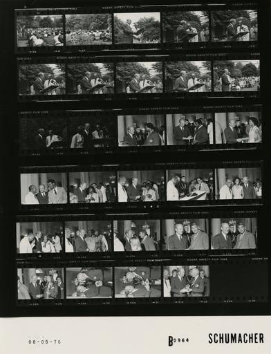 | Keywords: Ford B0964 NLGRF photo contact sheet (1976-08-05)(Gerald Ford Library).jpg White House Photographic Office WHPO is housed at the Gerald R Ford Presidential Library a branch of the National Archives and Records Administration NARA <br/><br/> This file is a 200 dpi photo contact sheet having images from roll of film B0964 of the August 9 1974 - January 20 1977 Gerald R Ford White House Photographic Office Series A0001-A9999 and B0001-B2886 photographs <br/><br/> The date on the photo contact sheet is the date the roll of film was processed not necessarily the date the photographs were taken See table below for additional details 1976-08-05 Gerald R Ford Presidential Library Image http //www fordlibrarymuseum gov/library/whphotos/B0964_NLGRF jpg B0964_NLGRF jpg from http //www fordlibrarymuseum gov/library/whphotos/19760805whpo pdf White House Photographs August 5 1976 of the http //www fordlibrarymuseum gov/Library/whphotos/whpo asp White House Photographic Collection page White House Photographic Office WHPO - Schumacher PD-USGov Institution Institution Gerald R Ford Presidential Library Table wikitable sortable + Photo contact sheet B0964 U S President Ford Administration Gerald R Ford Library Frame s Tone Subject proper Subject generic Names Geographic Location Photographer Date - 3A-4A BW Presentation of the Presidential Medal of Freedom to Jesse Owens Ceremony -US Olympic Committee GRF standing at lectern speaking; crowd seated; various angles and distances GRF Crowd East Garden Schumacher 1976-08-05 - 5A-13A BW Presentation of the Presidential Medal of Freedom to Jesse Owens Ceremony -US Olympic Committee GRF and Owens standing at lectern; GRF presenting Medal of Freedom; various angles and distances Howard Cosell in background in some frames GRF Jesse Owens Crowd East Garden Schumacher 1976-08-05 - 14A BW Presentation of the Presidential Medal of Freedom to Jesse Owens Ceremony -US Olympic Committee standing posing at lectern; close up GRF Betty Ford Jesse Owens Ruth Owens East Garden Schumacher 1976-08-05 - 15A-21A BW Reception Following Presentation of the Presidential Medal of Freedom to Jesse Owens -US Olympic Committee greeting handshaking; all not in frames GRF Guests Summer Olympians Cross Hall Schumacher 1976-08-05 - 22A-24A BW Reception Following Presentation of the Presidential Medal of Freedom to Jesse Owens -US Olympic Committee greeting handshaking; all not in frames GRF Jesse Owens Guests Summer Olympians Cross Hall Schumacher 1976-08-05 - 25A-27A BW Reception Following Presentation of the Presidential Medal of Freedom to Jesse Owens -US Olympic Committee greeting handshaking standing posing GRF Howard Cosell Cross Hall Schumacher 1976-08-05 - 28A BW Reception Following Presentation of the Presidential Medal of Freedom to Jesse Owens -US Olympic Committee greeting handshaking talking GRF Donna DeVerona Cross Hall Schumacher 1976-08-05 - 29A-31A BW Reception Following Presentation of the Presidential Medal of Freedom to Jesse Owens -US Olympic Committee greeting handshaking talking; man presenting gifts to GRF GRF Unidentified Man Cross Hall Schumacher 1976-08-05 Gerald R Ford Presidential Library and Museum-cooperation PD-USGov Contact sheets by the Ford White House August 1976 Howard Cosell |