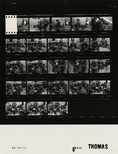 Keywords: Ford B0974 NLGRF photo contact sheet (1976-08-06)(Gerald Ford Library).jpg White House Photographic Office WHPO is housed at the Gerald R Ford Presidential Library a branch of the National Archives and Records Administration NARA <br/><br/> This file is a 200 dpi photo contact sheet having images from roll of film B0974 of the August 9 1974 - January 20 1977 Gerald R Ford White House Photographic Office Series A0001-A9999 and B0001-B2886 photographs <br/><br/> The date on the photo contact sheet is the date the roll of film was processed not necessarily the date the photographs were taken See table below for additional details 1976-08-06 Gerald R Ford Presidential Library Image http //www fordlibrarymuseum gov/library/whphotos/B0974_NLGRF jpg B0974_NLGRF jpg from http //www fordlibrarymuseum gov/library/whphotos/19760806whpo pdf White House Photographs August 6 1976 of the http //www fordlibrarymuseum gov/Library/whphotos/whpo asp White House Photographic Collection page White House Photographic Office WHPO - Thomas PD-USGov Institution Institution Gerald R Ford Presidential Library Table wikitable sortable + Photo contact sheet B0974 U S President Ford Administration Gerald R Ford Library Frame s Tone Subject proper Subject generic Names Geographic Location Photographer Date - 2A-3A BW Chief of Protocol seated talking near fireplace; O'Donnell standing in 2nd frame GRF Shirley Temple Black Oval Office Thomas 1976-08-06 - 3A-4A BW seated talking near fireplace GRF Rumsfeld Oval Office Thomas 1976-08-06 - 5A BW Thomas 1976-08-06 - 6A-23A BW seated talking near fireplace; various angles and distances; all not in every frame GRF Rumsfeld Scowcroft Oval Office Thomas 1976-08-06 Gerald R Ford Presidential Library and Museum-cooperation PD-USGov Contact sheets by the Ford White House August 1976 |