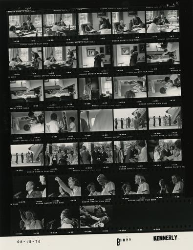 Keywords: Ford B1077 NLGRF photo contact sheet (1976-08-15)(Gerald Ford Library).jpg White House Photographic Office WHPO is housed at the Gerald R Ford Presidential Library a branch of the National Archives and Records Administration NARA <br/><br/> This file is a 200 dpi photo contact sheet having images from roll of film B1077 of the August 9 1974 - January 20 1977 Gerald R Ford White House Photographic Office Series A0001-A9999 and B0001-B2886 photographs <br/><br/> The date on the photo contact sheet is the date the roll of film was processed not necessarily the date the photographs were taken See table below for additional details 1976-08-15 Gerald R Ford Presidential Library Image http //www fordlibrarymuseum gov/library/whphotos/B1077_NLGRF jpg B1077_NLGRF jpg from http //www fordlibrarymuseum gov/library/whphotos/19760815whpo pdf White House Photographs August 15 1976 of the http //www fordlibrarymuseum gov/Library/whphotos/whpo asp White House Photographic Collection page White House Photographic Office WHPO <br/> Creator David Hume Kennerly PD-USGov Institution Institution Gerald R Ford Presidential Library Table wikitable sortable + Photo contact sheet B1077 U S President Ford Administration Gerald R Ford Library Frame s Tone Subject proper Subject generic Names Geographic Location Photographer Date - 2A-8A BW GRF seated at desk; BS and Penny seated; Man leaning over desk talking to GRF; various angles and distances; all not in every frame GRF Penny Scowcroft Unidentified Man Oval Office Kennerly 1976-08-15 - 9A-10A BW standing talking on telephone GRF Second Floor - President's Private Office Kennerly 1976-08-15 - 11A-14A BW standing talking on telephone Betty Ford Second Floor - President's Private Office Kennerly 1976-08-15 - 15A-19A BW Flight to Kansas City Missouri BF standing Weidenfeld seated; GRF coatless in background in President's Cabin Betty Ford Weidenfeld First Lady's Cabin - Air Force One Kennerly 1976-08-15 - 20A-22A BW Arrival in Kansas City Missouri GRF and BF descending steps of Air Force One; greeting handshaking others at base of steps GRF Betty Ford Others Kansas City MO Kansas City Municipal Airport Kennerly 1976-08-15 - 23A-26A BW Trip to Kansas City Missouri - Convention - Arrival at the Crown Center Hotel greeting handshaking embracing; various distances; all not in frames GRF Betty Ford Susan Ford Steve Ford Jack Ford Vice President Mrs Rockefeller Gov Mrs Milliken Morton Others Kansas City MO Crown Center Hotel - Outside Kennerly 1976-08-15 - 27A-28A BW Trip to Kansas City Missouri - Convention - Rally Upon Arrival at the Crown Center Hotel smiling; raising held hands; close ups GRF Happy Rockefeller Kansas City MO Crown Center Hotel Kennerly 1976-08-15 - 29A-30A BW Trip to Kansas City Missouri - Convention - Rally Upon Arrival at the Crown Center Hotel smiling; on stage; close ups Betty Ford Susan Ford Kansas City MO Crown Center Hotel Kennerly 1976-08-15 - 31A-32A BW Trip to Kansas City Missouri - Convention - Rally Upon Arrival at the Crown Center Hotel smiling; raising held hands; close ups GRF Susan Ford Kansas City MO Crown Center Hotel Kennerly 1976-08-15 - 33A BW Trip to Kansas City Missouri - Convention - Rally Upon Arrival at the Crown Center Hotel smiling; GRF's arm on BF's shoulder; close up GRF Betty Ford Kansas City MO Crown Center Hotel Kennerly 1976-08-15 - 34A BW Trip to Kansas City Missouri - Convention - Rally Upon Arrival at the Crown Center Hotel BF reaching down handshaking Betty Ford Crowd Kansas City MO Crown Center Hotel Kennerly 1976-08-15 Gerald R Ford Presidential Library and Museum-cooperation PD-USGov Contact sheets by the Ford White House August 1976 Photographs by David Hume Kennerly from 1976 |