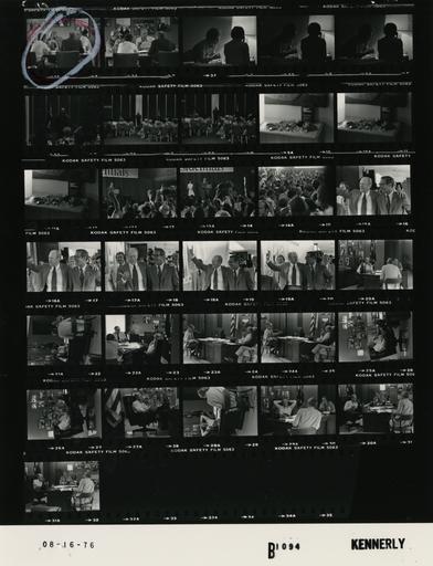 | Keywords: Ford B1094 NLGRF photo contact sheet (1976-08-16)(Gerald Ford Library).jpg White House Photographic Office WHPO is housed at the Gerald R Ford Presidential Library a branch of the National Archives and Records Administration NARA <br/><br/> This file is a 200 dpi photo contact sheet having images from roll of film B1094 of the August 9 1974 - January 20 1977 Gerald R Ford White House Photographic Office Series A0001-A9999 and B0001-B2886 photographs <br/><br/> The date on the photo contact sheet is the date the roll of film was processed not necessarily the date the photographs were taken See table below for additional details 1976-08-16 Gerald R Ford Presidential Library Image http //www fordlibrarymuseum gov/library/whphotos/B1094_NLGRF jpg B1094_NLGRF jpg from http //www fordlibrarymuseum gov/library/whphotos/19760816whpo pdf White House Photographs August 16 1976 of the http //www fordlibrarymuseum gov/Library/whphotos/whpo asp White House Photographic Collection page White House Photographic Office WHPO <br/> Creator David Hume Kennerly PD-USGov Institution Institution Gerald R Ford Presidential Library Table wikitable sortable + Photo contact sheet B1094 U S President Ford Administration Gerald R Ford Library Frame s Tone Subject proper Subject generic Names Geographic Location Photographer Date - 1A-2A BW Trip to Kansas City Missouri - Convention - Convention Strategy Meeting seated around table; only GRF and Hartmann facing camera; Smith not seen GRF Hartmann Orben Penny Douglas Smith Kansas City MO Crown Center Hotel - President's Suite - Office Kennerly 1976-08-16 - 3A-5A BW Trip to Kansas City Missouri - Convention BF seated leaning on table reading eating; woman on telephone back to camera in silhouette Betty Ford Unidentified Woman Kansas City MO Crown Center Hotel - President's Suite Kennerly 1976-08-16 - 6A-8A BW Trip to Kansas City Missouri - Convention - Meeting with Delegates and Alternates from Hawaii and Guam to the Republican National Convention GRF at lectern speaking; others seated listening; taken from back of room; all not in every frame; floral shirts GRF Delegates Alternates from Hawaii Guam Kansas City MO Center Hotel - Centennial Room A Kennerly 1976-08-16 - 9A-11A BW Trip to Kansas City Missouri - Convention jewelry on table in front of Protect your Valuables sign Kansas City MO Crown Center Hotel - President's Suite Kennerly 1976-08-16 - 12A-13A BW Trip to Kansas City Missouri - Convention - Address to the Presidentials President Ford Committee PFC Youth Group GRF at lectern speaking; others seated listening; various distances; taken from back of room; all not in every frame GRF Presidentials Kansas City MO Kansas City Municipal Airport Trade Mart Exhibition Center Kennerly 1976-08-16 - 14A BW Trip to Kansas City Missouri - Convention - Address to the Presidentials President Ford Committee PFC Youth Group mingling handshaking; GRF in crowd smiling; all not in frame GRF Presidentials Kansas City MO Kansas City Municipal Airport Trade Mart Exhibition Center Kennerly 1976-08-16 - 15A-19A BW Trip to Kansas City Missouri - Convention walking talking laughing; GRF waving with right arm left arm around Simon's shoulder GRF Simon Kansas City MO Kansas City Municipal Airport Trade Mart Exhibition Center -Outside Kennerly 1976-08-16 - 20A-31A BW Trip to Kansas City Missouri - Convention seated around desk; GRF coatless without tie smoking pipe; various angles and distances; Schmults not in every frame GRF Cheney Schmults Kansas City MO Crown Center Hotel - President's Suite - Office Kennerly 1976-08-16 Gerald R Ford Presidential Library and Museum-cooperation PD-USGov Contact sheets by the Ford White House August 1976 Photographs by David Hume Kennerly from 1976 |
