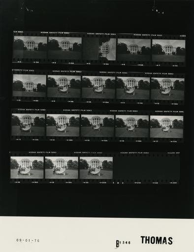 Keywords: Ford B1346 NLGRF photo contact sheet (1976-09-01)(Gerald Ford Library).jpg White House Photographic Office WHPO is housed at the Gerald R Ford Presidential Library a branch of the National Archives and Records Administration NARA <br/><br/> This file is a 200 dpi photo contact sheet having images from roll of film B1346 of the August 9 1974 - January 20 1977 Gerald R Ford White House Photographic Office Series A0001-A9999 and B0001-B2886 photographs <br/><br/> The date on the photo contact sheet is the date the roll of film was processed not necessarily the date the photographs were taken See table below for additional details 1976-09-01 Gerald R Ford Presidential Library Image http //www fordlibrarymuseum gov/library/whphotos/B1346_NLGRF jpg B1346_NLGRF jpg from http //www fordlibrarymuseum gov/library/whphotos/19760901whpo pdf White House Photographs September 1 1976 of the http //www fordlibrarymuseum gov/Library/whphotos/whpo asp White House Photographic Collection page White House Photographic Office WHPO - Thomas PD-USGov Institution Institution Gerald R Ford Presidential Library Table wikitable sortable + Photo contact sheet B1346 U S President Ford Administration Gerald R Ford Library Frame s Tone Subject proper Subject generic Names Geographic Location Photographer Date - 3A-8A BW Views of the South Portico; 1 vertical South Lawn Thomas 1976-09-01 - 9A-14A BW Bicentennial Presentation From Langley Air Force Base Virginia standing posing with 13-Star Flag Mitler Dorothy Smith South Lawn Thomas 1976-09-01 - 15A-22A BW Bicentennial Presentation From Langley Air Force Base Virginia standing posing with 13-Star Flag Mitler Dorothy Smith Others South Lawn Thomas 1976-09-01 Gerald R Ford Presidential Library and Museum-cooperation PD-USGov Contact sheets by the Ford White House September 1976 |