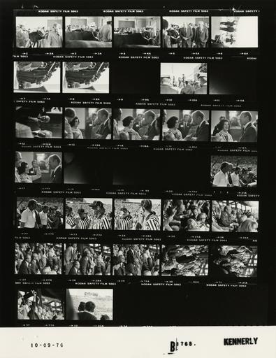 Keywords: Ford B1765 NLGRF photo contact sheet (1976-10-09)(Gerald Ford Library).jpg White House Photographic Office WHPO is housed at the Gerald R Ford Presidential Library a branch of the National Archives and Records Administration NARA <br/><br/> This file is a 200 dpi photo contact sheet having images from roll of film B1765 of the August 9 1974 - January 20 1977 Gerald R Ford White House Photographic Office Series A0001-A9999 and B0001-B2886 photographs <br/><br/> The date on the photo contact sheet is the date the roll of film was processed not necessarily the date the photographs were taken See table below for additional details 1976-10-09 Gerald R Ford Presidential Library Image http //www fordlibrarymuseum gov/library/whphotos/B1765_NLGRF jpg B1765_NLGRF jpg from http //www fordlibrarymuseum gov/library/whphotos/19761009whpo pdf White House Photographs October 9 1976 of the http //www fordlibrarymuseum gov/Library/whphotos/whpo asp White House Photographic Collection page White House Photographic Office WHPO <br/> Creator David Hume Kennerly PD-USGov Institution Institution Gerald R Ford Presidential Library Table wikitable sortable + Photo contact sheet B1765 U S President Ford Administration Gerald R Ford Library Frame s Tone Subject proper Subject generic Names Geographic Location Photographer Date - 2-5 BW Campaign Trip to Texas - Visit to the Texas State Fair standing talking; various angles and distances; all not in every frame; cattle in some frames GRF Connally Ranchers; Black Angus Dallas TX Texas State Fairgrounds - Cattle Barn Kennerly 1976-10-09 - 6-8 BW Campaign Trip to Texas - Visit to the Texas State Fair GRF and Connolly on stage; backs to camera; crowd in background GRF Connally Others; Crowd Dallas TX Texas State Fairgrounds Kennerly 1976-10-09 - 9 BW Kennerly 1976-10-09 - 10 BW Campaign Trip to Texas - Visit to the Texas State Fair GRF and Connolly on stage standing; Connally at microphone; crowd in foreground; long shot GRF Connally Others; Crowd Dallas TX Texas State Fairgrounds Kennerly 1976-10-09 - 11 BW Kennerly 1976-10-09 - 12 BW Campaign Trip to Texas - Visit to the Texas State Fair GRF in foreground out of focus; Strauss talking to others in background GRF Robert Strauss Dallas TX Cotton Bowl - Texas State Fair Box Kennerly 1976-10-09 - 13-17 BW Campaign Trip to Texas - Visit to the Texas State Fair - Daughter and Son-in-law of Lyndon Baines Johnson standing talking laughing; Patrick not in all frames GRF Luci Johnson Nugent Patrick Nugent Dallas TX Cotton Bowl - Texas State Fair Box Kennerly 1976-10-09 - 18-20 BW Kennerly 1976-10-09 - 21-22 BW Campaign Trip to Texas - Prior to Coin Toss for Texas-Oklahoma Football Game - Opening of the Texas State Fair - Head Coaches University of Texas and University of Oklahoma Football Teams walking across field GRF Darrell Royal Barry Switzer Dallas TX Cotton Bowl - Texas State Fairgrounds Kennerly 1976-10-09 - 23-24 BW Campaign Trip to Texas - Prior to Coin Toss for Texas-Oklahoma Football Game - Opening of the Texas State Fair - Head Coaches University of Texas and University of Oklahoma Football Teams standing talking; close range GRF Referees Dallas TX Cotton Bowl - Texas State Fairgrounds Kennerly 1976-10-09 - 25-32 BW Campaign Trip to Texas - Watching Texas-Oklahoma Football Game -Opening of the Texas State Fair seated in stands; watching football game not seen ; various angles and distances; all not in every frame GRF Connally Nellie Connally Others Dallas TX Cotton Bowl - Texas State Fairgrounds Kennerly 1976-10-09 - 33 BW Campaign Trip to Texas - Texas-Oklahoma Football Game - Opening of the Texas State Fair long shot backs of heads in foreground Crowd Dallas TX Cotton Bowl - Texas State Fairgrounds Kennerly 1976-10-09 Gerald R Ford Presidential Library and Museum-cooperation PD-USGov Contact sheets by the Ford White House October 1976 Photographs by David Hume Kennerly from 1976 |