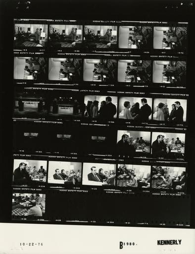 Keywords: Ford B1980 NLGRF photo contact sheet (1976-10-22)(Gerald Ford Library).jpg White House Photographic Office WHPO is housed at the Gerald R Ford Presidential Library a branch of the National Archives and Records Administration NARA <br/><br/> This file is a 200 dpi photo contact sheet having images from roll of film B1980 of the August 9 1974 - January 20 1977 Gerald R Ford White House Photographic Office Series A0001-A9999 and B0001-B2886 photographs <br/><br/> The date on the photo contact sheet is the date the roll of film was processed not necessarily the date the photographs were taken See table below for additional details 1976-10-22 Gerald R Ford Presidential Library Image http //www fordlibrarymuseum gov/library/whphotos/B1980_NLGRF jpg B1980_NLGRF jpg from http //www fordlibrarymuseum gov/library/whphotos/19761022whpo pdf White House Photographs October 22 1976 of the http //www fordlibrarymuseum gov/Library/whphotos/whpo asp White House Photographic Collection page White House Photographic Office WHPO <br/> Creator David Hume Kennerly PD-USGov Institution Institution Gerald R Ford Presidential Library Table wikitable sortable + Photo contact sheet B1980 U S President Ford Administration Gerald R Ford Library Frame s Tone Subject proper Subject generic Names Geographic Location Photographer Date - 3-5 BW Campaign Trip to Virginia; Prior to Third Presidential Debate Between Gerald Ford and Jimmy Carter - Williamsburg Virginia GRF seated smoking pipe reading speech; BF and Susan embracing on right of frame; bank of make-up mirrors in background GRF Betty Ford Susan Ford Williamsburg VA Dressing Room - Phi Beta Kappa Hall - College of William and Mary Kennerly 1976-10-22 - 6-10 BW Campaign Trip to Virginia; Prior to Third Presidential Debate Between Gerald Ford and Jimmy Carter - Williamsburg Virginia GRF and BF embracing; Susan standing to right of BF; make-up mirrors in background GRF Betty Ford Susan Ford Williamsburg VA Dressing Room - Phi Beta Kappa Hall - College of William and Mary Kennerly 1976-10-22 - 11-12 BW Campaign Trip to Virginia; Prior to Third Presidential Debate Between Gerald Ford and Jimmy Carter - Williamsburg Virginia standing talking; make-up mirrors in background GRF Betty Ford Susan Ford Williamsburg VA Dressing Room - Phi Beta Kappa Hall - College of William and Mary Kennerly 1976-10-22 - 13-14 BW Campaign Trip to Virginia; Third Presidential Debate Between Gerald Ford and Jimmy Carter - Williamsburg Virginia GRF and Carter at lecterns in foreground backs to camera; others in background GRF Jimmy Carter Barbara Walters Joseph Kraft Robert Maynard Jack Nelson Crowd Williamsburg VA College of William and Mary - Phi Beta Kappa Hall Kennerly 1976-10-22 - 15-17 BW Campaign Trip to Virginia; Third Presidential Debate Between Gerald Ford and Jimmy Carter - Williamsburg Virginia standing talking; Elizabeth Dole embracing SF in middle frame Betty Ford Susan Ford Bob Dole Elizabeth Dole Williamsburg VA College of William and Mary - Phi Beta Kappa Hall - Waiting Room Kennerly 1976-10-22 - 18-20 BW Campaign Trip to Virginia; Third Presidential Debate Between Gerald Ford and Jimmy Carter - Williamsburg Virginia GRF and Carter at lecterns; extreme long shots from back of room GRF Jimmy Carter Barbara Walters Joseph Kraft Robert Maynard Jack Nelson Crowd Williamsburg VA College of William and Mary - Phi Beta Kappa Hall Kennerly 1976-10-22 - 21-25 BW Campaign Trip to Virginia; Third Presidential Debate Between Gerald Ford and Jimmy Carter - Williamsburg Virginia seated on sofa; watching debate on television; taken from right of Bob Dole Betty Ford Susan Ford Bob Dole Elizabeth Dole Pearl Bailey Williamsburg VA College of William and Mary - Phi Beta Kappa Hall - Waiting Room Kennerly 1976-10-22 - 26-28 BW Campaign Trip to Virginia; Third Presidential Debate Between Gerald Ford and Jimmy Carter - Williamsburg Virginia seated watching debate on television not shown ; DHK seated on floor; Cheney smoking cigarette; all not in every frame Greenspan Raoul-Duval Cheney Kennerly; Unidentified Man Williamsburg VA College of William and Mary - Phi Beta Kappa Hall - Waiting Room Kennerly 1976-10-22 Gerald R Ford Presidential Library and Museum-cooperation PD-USGov Contact sheets by the Ford White House October 1976 Photographs by David Hume Kennerly from 1976 |