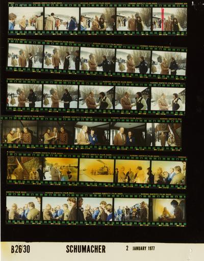 | Keywords: Ford B2630 NLGRF photo contact sheet (1977-01-02)(Gerald Ford Library).jpg White House Photographic Office WHPO is housed at the Gerald R Ford Presidential Library a branch of the National Archives and Records Administration NARA <br/><br/> This file is a 200 dpi photo contact sheet having images from roll of film B2630 of the August 9 1974 - January 20 1977 Gerald R Ford White House Photographic Office Series A0001-A9999 and B0001-B2886 photographs <br/><br/> The date on the photo contact sheet is the date the roll of film was processed not necessarily the date the photographs were taken See table below for additional details 1977-01-02 Gerald R Ford Presidential Library Image http //www fordlibrarymuseum gov/library/whphotos/B2630_NLGRF jpg B2630_NLGRF jpg from http //www fordlibrarymuseum gov/library/whphotos/19770102whpo pdf White House Photographs January 2 1977 of the http //www fordlibrarymuseum gov/Library/whphotos/whpo asp White House Photographic Collection page White House Photographic Office WHPO - Schumacher PD-USGov Institution Institution Gerald R Ford Presidential Library Table wikitable sortable + Photo contact sheet B2630 U S President Ford Administration Gerald R Ford Library Frame s Tone Subject proper Subject generic Names Geographic Location Photographer Date - 4A-5A Color Trip to Colorado - Christmas and Skiing Vacation in Vail CO standing talking; GRF wearing sportcoat and tie; others in winter wear GRF Others Vail CO Presidential Vacation Residence - Richard Bass Residence - Outside Schumacher 1977-01-02 - 6A-18A Color Trip to Colorado - Christmas and Skiing Vacation in Vail CO - Prior to Departure for Washington DC greeting handshaking standing talking; GRF wearing sportcoat and tie; others in winter wear; various angles and distances; all not in every frame GRF Police Officers Vail CO Presidential Vacation Residence - Richard Bass Residence - Outside Schumacher 1977-01-02 - 19A-20A Color Trip to Colorado - Christmas and Skiing Vacation in Vail CO - Prior to Departure for Washington DC standing talking GRF Pepi Gramshammer Unidentified Man Vail CO Presidential Vacation Residence - Richard Bass Residence Schumacher 1977-01-02 - 21A-22A Color Trip to Colorado - Christmas and Skiing Vacation in Vail CO - Prior to Departure for Washington DC standing talking; man making a fist GRF Unidentified Man Vail CO Presidential Vacation Residence - Richard Bass Residence Schumacher 1977-01-02 - 23A-24A Color Trip to Colorado - Christmas and Skiing Vacation in Vail CO - Prior to Departure for Washington DC walking near steps; GRF wavig in 1st frame hands in pockets in 2nd GRF Others Vail CO Presidential Vacation Residence - Richard Bass Residence - Outside Schumacher 1977-01-02 - 25A Color Trip to Colorado - Christmas and Skiing Vacation in Vail CO - Prior to Departure for Nottingham Farm Helipad standing near limousine; GRF signing autograph GRF Unidentified Girls Vail CO Presidential Vacation Residence - Richard Bass Residence - Outside Schumacher 1977-01-02 - 26A Color Trip to Colorado - Christmas and Skiing Vacation in Vail CO - Prior to Departure for Andrews Air Force Base walking toward camera; helicopter in background GRF Military Aid Captain Walter Domina Grand Junction CO Walker Field Schumacher 1977-01-02 - 27A-32A Color Trip to Colorado - Christmas and Skiing Vacation in Vail CO - Prior to Departure for Andrews Air Force Base handshaking saying goodbye; all not in every frame; nose of Air Force One in last frame GRF Others Grand Junction CO Walker Field Schumacher 1977-01-02 - 33A Color Trip to Colorado - Christmas and Skiing Vacation in Vail CO - Return Flight to Andrews Air Force Base seated backlit by window Unidentified Girl Kira Gramshammer ; Unidentified Woman Air Force One Schumacher 1977-01-02 Gerald R Ford Presidential Library and Museum-cooperation PD-USGov Contact sheets by the Ford White House January 1977 |