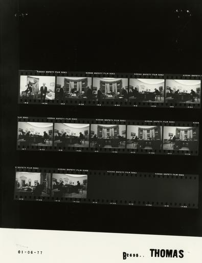 | Keywords: Ford B2695 NLGRF photo contact sheet (1977-01-06)(Gerald Ford Library).jpg White House Photographic Office WHPO is housed at the Gerald R Ford Presidential Library a branch of the National Archives and Records Administration NARA <br/><br/> This file is a 200 dpi photo contact sheet having images from roll of film B2695 of the August 9 1974 - January 20 1977 Gerald R Ford White House Photographic Office Series A0001-A9999 and B0001-B2886 photographs <br/><br/> The date on the photo contact sheet is the date the roll of film was processed not necessarily the date the photographs were taken See table below for additional details 1977-01-06 Gerald R Ford Presidential Library Image http //www fordlibrarymuseum gov/library/whphotos/B2695_NLGRF jpg B2695_NLGRF jpg from http //www fordlibrarymuseum gov/library/whphotos/19770106whpo pdf White House Photographs January 6 1977 of the http //www fordlibrarymuseum gov/Library/whphotos/whpo asp White House Photographic Collection page White House Photographic Office WHPO - Thomas PD-USGov Institution Institution Gerald R Ford Presidential Library Table wikitable sortable + Photo contact sheet B2695 U S President Ford Administration Gerald R Ford Library Frame s Tone Subject proper Subject generic Names Geographic Location Photographer Date - 2 BW Prior to Presentation of State Department Award for Meritorious Service standing posing; woman holding child Scowcroft Mr Mrs Ken Quinn Child Scowcroft's Office - Old Executive Office Building OEOB OEOB Thomas 1977-01-06 - 3-4 BW Partner Pierson Ball and Dowd Law Firm GRF seated others standing around desk talking; taken from front of desk GRF Dean Burch Barrett Oval Office Thomas 1977-01-06 - 5-13 BW Partner Pierson Ball and Dowd Law Firm seated around desk talking; various angles and distances GRF Dean Burch Barrett Oval Office Thomas 1977-01-06 Gerald R Ford Presidential Library and Museum-cooperation PD-USGov Contact sheets by the Ford White House January 1977 |