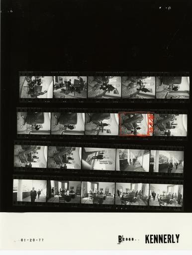 Keywords: Ford B2868 NLGRF photo contact sheet (1977-01-20)(Gerald Ford Library).jpg White House Photographic Office WHPO is housed at the Gerald R Ford Presidential Library a branch of the National Archives and Records Administration NARA <br/><br/> This file is a 200 dpi photo contact sheet having images from roll of film B2868 of the August 9 1974 - January 20 1977 Gerald R Ford White House Photographic Office Series A0001-A9999 and B0001-B2886 photographs <br/><br/> The date on the photo contact sheet is the date the roll of film was processed not necessarily the date the photographs were taken See table below for additional details 1977-01-20 Gerald R Ford Presidential Library Image http //www fordlibrarymuseum gov/library/whphotos/B2868_NLGRF jpg B2868_NLGRF jpg from http //www fordlibrarymuseum gov/library/whphotos/19770120whpo pdf White House Photographs January 20 1977 of the http //www fordlibrarymuseum gov/Library/whphotos/whpo asp White House Photographic Collection page White House Photographic Office WHPO <br/> Creator David Hume Kennerly PD-USGov Institution Institution Gerald R Ford Presidential Library Table wikitable sortable + Photo contact sheet B2868 U S President Ford Administration Gerald R Ford Library Frame s Tone Subject proper Subject generic Names Geographic Location Photographer Date - 3-4 BW Final Arrangements in Oval Office Prior to Inauguration of Jimmy Carter; Pet Golden Retriever GRF seated at desk talking to Downton; dog seated to right of GRF; Downton leaning forward; briefcase open; dog lying nearby GRF Downton Liberty or Misty Oval Office Kennerly 1977-01-20 - 5-10 BW Preparing to Leave Oval Office for Final Time Prior to Inauguration of Jimmy Carter; Pet Golden Retriever GRF walking from desk stopping hands on hips looking at desk; dog walking behind GRF Liberty or Misty Oval Office Kennerly 1977-01-20 - 11-14 BW Preparing to Leave Oval Office for Final Time Prior to Inauguration of Jimmy Carter walking away from camera hands on hips approaching doorway to Colonnade; desk in foreground; long shots from across room GRF Oval Office Kennerly 1977-01-20 - 15-18 BW Walking Along Colonnade for Final Time Prior to Inauguration of Jimmy Carter GRF walking alone hands in pockets approaching camera; others following at a distance GRF; Others Colonnade Kennerly 1977-01-20 - 19-22 BW Clearing Office Prior to Inauguration of Jimmy Carter - Transition from White House clearing GRF's desk and credenza packing boxes; others standing watching Downton White House or National Archives staff; Others Oval Office Kennerly 1977-01-20 Gerald R Ford Presidential Library and Museum-cooperation PD-USGov Contact sheets by the Ford White House January 1977 Photographs by David Hume Kennerly from 1977 |