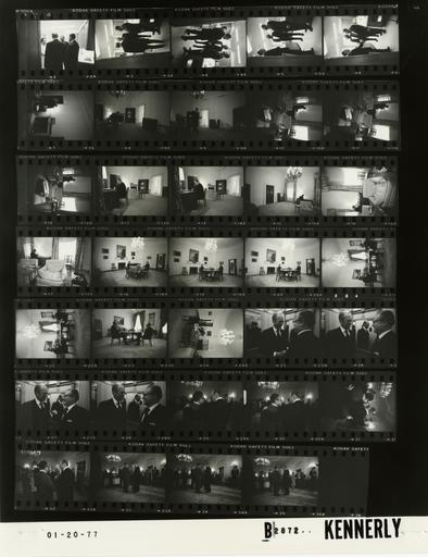 Keywords: Ford B2872 NLGRF photo contact sheet (1977-01-20)(Gerald Ford Library).jpg White House Photographic Office WHPO is housed at the Gerald R Ford Presidential Library a branch of the National Archives and Records Administration NARA <br/><br/> This file is a 200 dpi photo contact sheet having images from roll of film B2872 of the August 9 1974 - January 20 1977 Gerald R Ford White House Photographic Office Series A0001-A9999 and B0001-B2886 photographs <br/><br/> The date on the photo contact sheet is the date the roll of film was processed not necessarily the date the photographs were taken See table below for additional details 1977-01-20 Gerald R Ford Presidential Library Image http //www fordlibrarymuseum gov/library/whphotos/B2872_NLGRF jpg B2872_NLGRF jpg from http //www fordlibrarymuseum gov/library/whphotos/19770120whpo pdf White House Photographs January 20 1977 of the http //www fordlibrarymuseum gov/Library/whphotos/whpo asp White House Photographic Collection page White House Photographic Office WHPO <br/> Creator David Hume Kennerly PD-USGov Institution Institution Gerald R Ford Presidential Library Table wikitable sortable + Photo contact sheet B2872 U S President Ford Administration Gerald R Ford Library Frame s Tone Subject proper Subject generic Names Geographic Location Photographer Date - 2-6 BW Saying Farewell Prior to Final Departure From White House -Transition from White House standing talking handshaking; all not in every frame GRF White House staff White House Ushers Second Floor - Family Kitchen Kennerly 1977-01-20 - 7-12 BW Prior to Farewell Breakfast for Senior Administration Officials moving around room looking around for last time; I'm A Ford Not A Lincoln pillow on one easy chair GRF Second Floor - President's Private Office Kennerly 1977-01-20 - 13-17 BW Prior to Farewell Breakfast for Senior Administration Officials seated at desk writing; various angles and distances; I'm A Ford Not A Lincoln pillow on one easy chair GRF Second Floor - President's Private Office Kennerly 1977-01-20 - 18-24 BW Prior to Farewell Breakfast for Senior Administration Officials seated around small table talking eating; various angles and distances GRF Rockefeller; White House Butler Second Floor - Family Dining Room Kennerly 1977-01-20 - 25-28 BW Prior to Farewell Breakfast for Senior Administration Officials riding elevator talking smiling laughing; GRF also reflected in mirror GRF Rockefeller Elevator Kennerly 1977-01-20 - 29-31 BW Farewell Breakfast for Senior Administration Officials GRF and HAK standing backs to camera; GRF's left arm over HAK's left shoulder; others in background; close up to medium range GRF Kissinger; Others State Dining Room Kennerly 1977-01-20 - 32-35 BW Farewell Breakfast for Senior Administration Officials GRF and HAK standing backs to camera talking to unidentified man; others in background; medium to long shots GRF Kissinger; Unidentified Man; Others State Dining Room Kennerly 1977-01-20 Gerald R Ford Presidential Library and Museum-cooperation PD-USGov Contact sheets by the Ford White House January 1977 Photographs by David Hume Kennerly from 1977 |