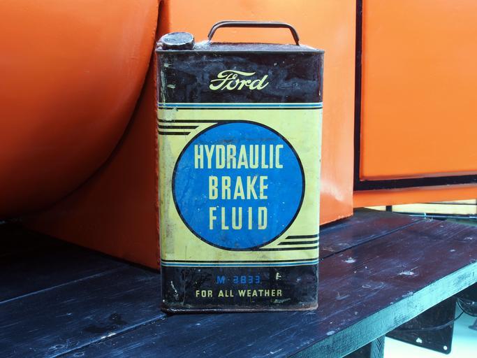 Keywords: Ford Hydraulic Brake Fluid M 3833 for all wather pic1.JPG Photographed at the Den Hartogh Ford museum own 2013-03-03 11 51 20 Alf van Beem CC-zero Collections of the Den Hartogh Ford Museum Classic vehicle photographs by Alf van Beem Cans Brake fluid |