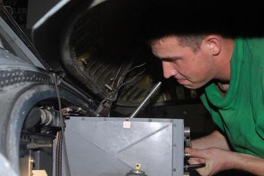 Keywords: Foreign Object Damage search aboard USS Ronald Reagan DVIDS121723.jpg en Aviation electronics technician Petty Officer 2nd Class James Wells 26-year-old native of Tulsa Okla reinstalls a tactical data processor into a SH-60F Seahawk assigned to the Black Knights of Helicopter Anti-Submarine Squadron 4 in the hangar bay of the Nimitz-class aircraft carrier USS Ronald Reagan The Seahawk is a twin-engine helicopter used for anti-submarine warfare search and rescue drug interdiction anti-ship warfare cargo lift and special operations Ronald Reagan is currently deployed to the 5th Fleet/NAVCENT area of responsibility Operations in the NAVCENT area of operations are focused on reassuring regional partners of the United States' commitment to security which promotes stability and global prosperity 2008-10-12 Petty Officer 3rd Class Torrey Lee https //www dvidshub net/image/121723 081012-N-+++++-007 2008-10-13 01 08 GULF OF OMAN USCENTCOM AT SEA PD-USGov-Military-Navy USS Ronald Reagan CVN-76 Images from DoD uploaded by Fæ |