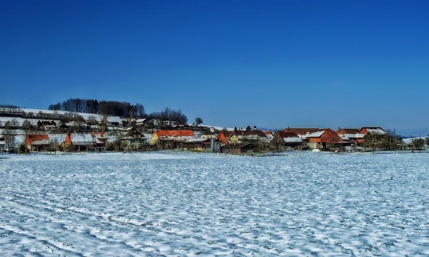 Keywords: forel-sur-lucens switzerland village houses homes winter snow nature outside wintry landscape scenic hdr