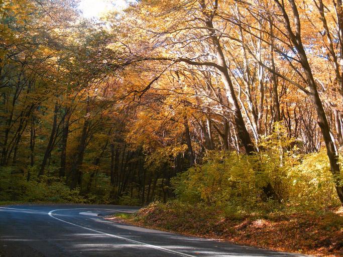 Keywords: forest autumn nature light colorful autumn forest orange road bush trees log autumn forest