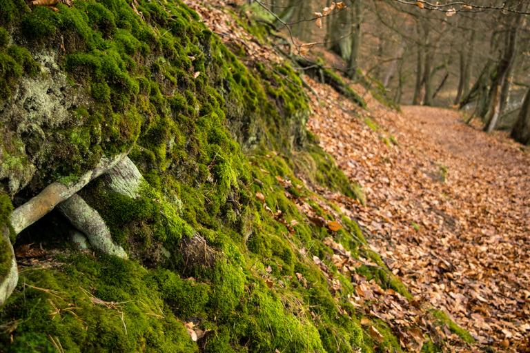 Keywords: forest away leaves moss nature landscape hiking forest path autumn