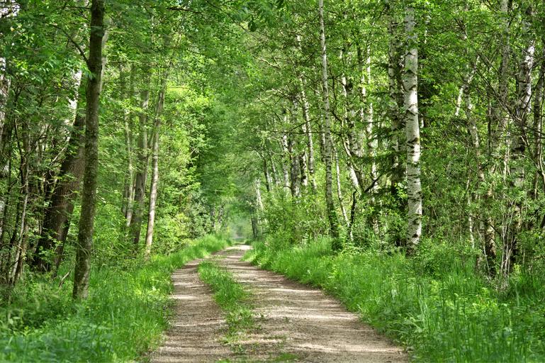 Keywords: forest away nature trees forest path trail nature trail hiking spring walk promenade green idyll recovery holiday relaxation